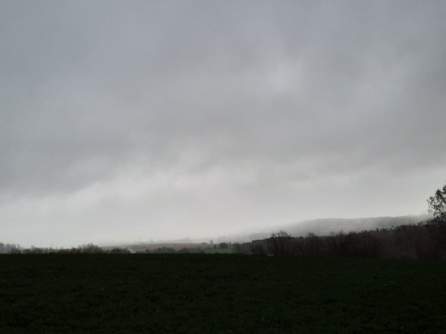 Velmi silná sněhová přeháňka, mírný až čerstvý vítr přechodně bílá tma a na SZ od nás cca 20 km se zablýsklo!