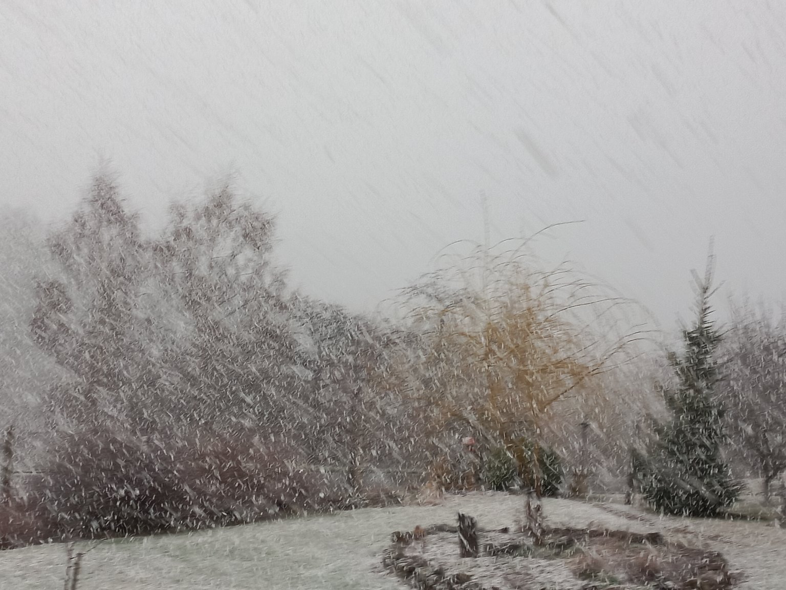Oblačno přechodně zataženo a silná sněhová přeháňka zas, zprvu i pršelo a fouká většinou slabý až mírný přechodně na čele čerstvý vítr, sníh se nedrží