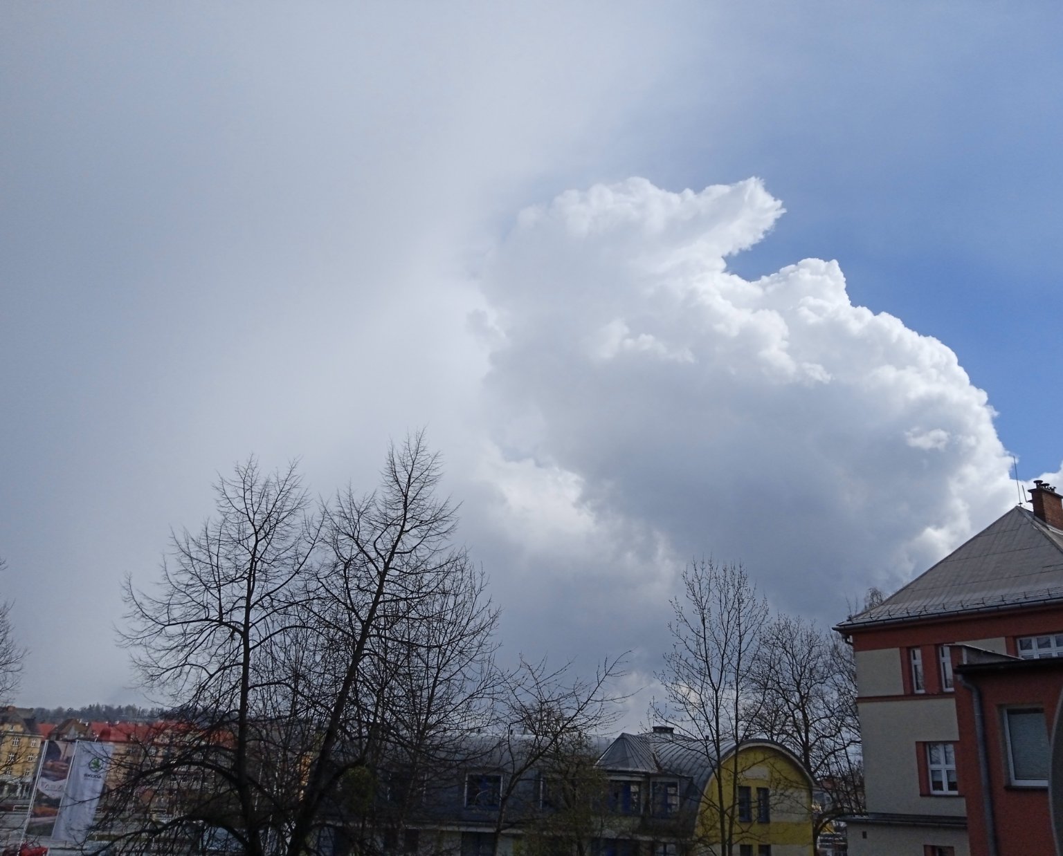 Teplota rychle stoupá, přeháňka ukázala mammata, další přeháňka jede jižně a další přes KH sem