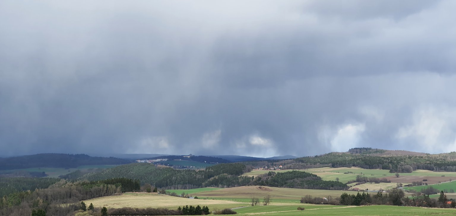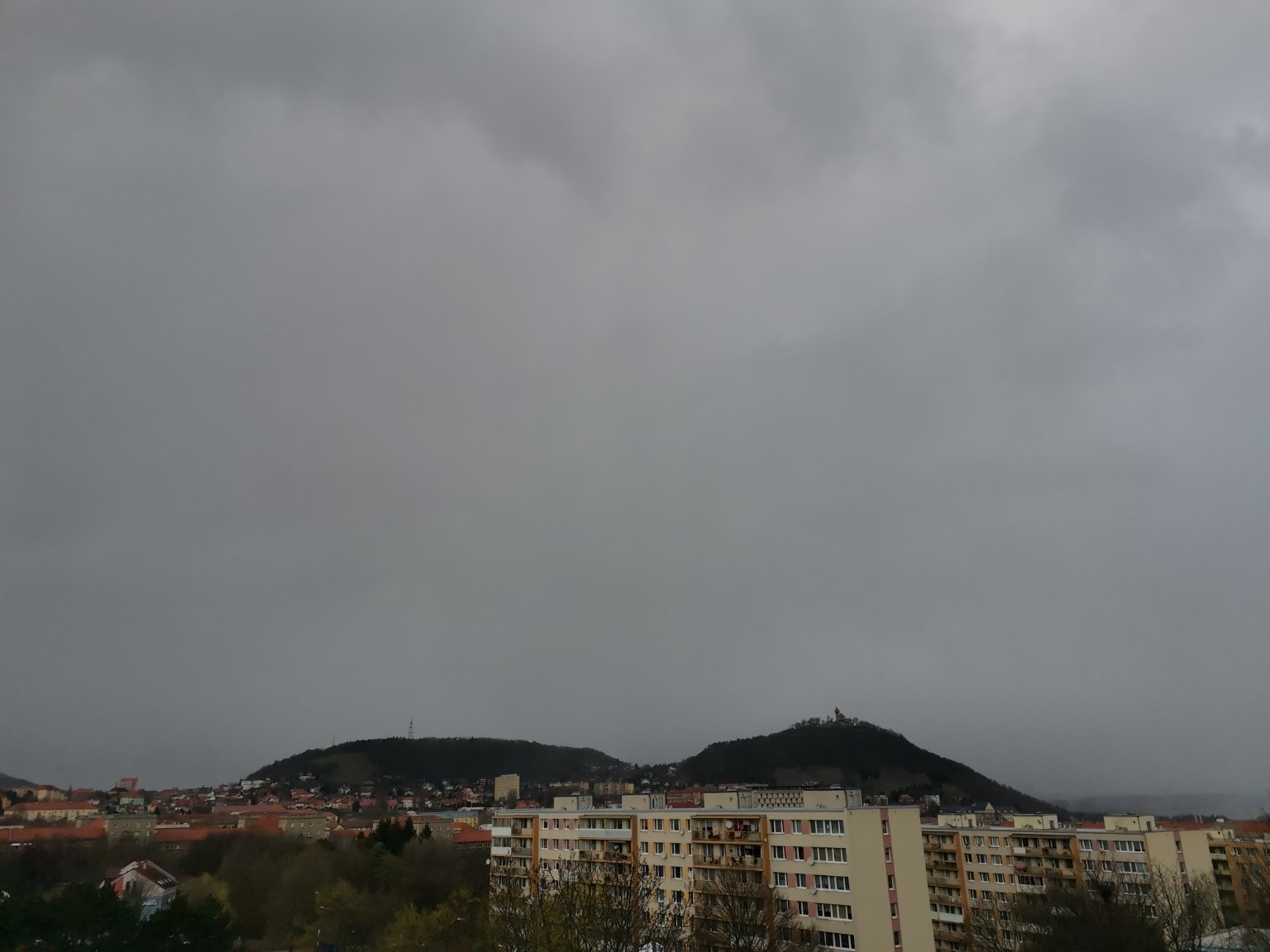 Celý den přecházejí sněhové přeháňky. Momentálně se oblačnost protrhává.