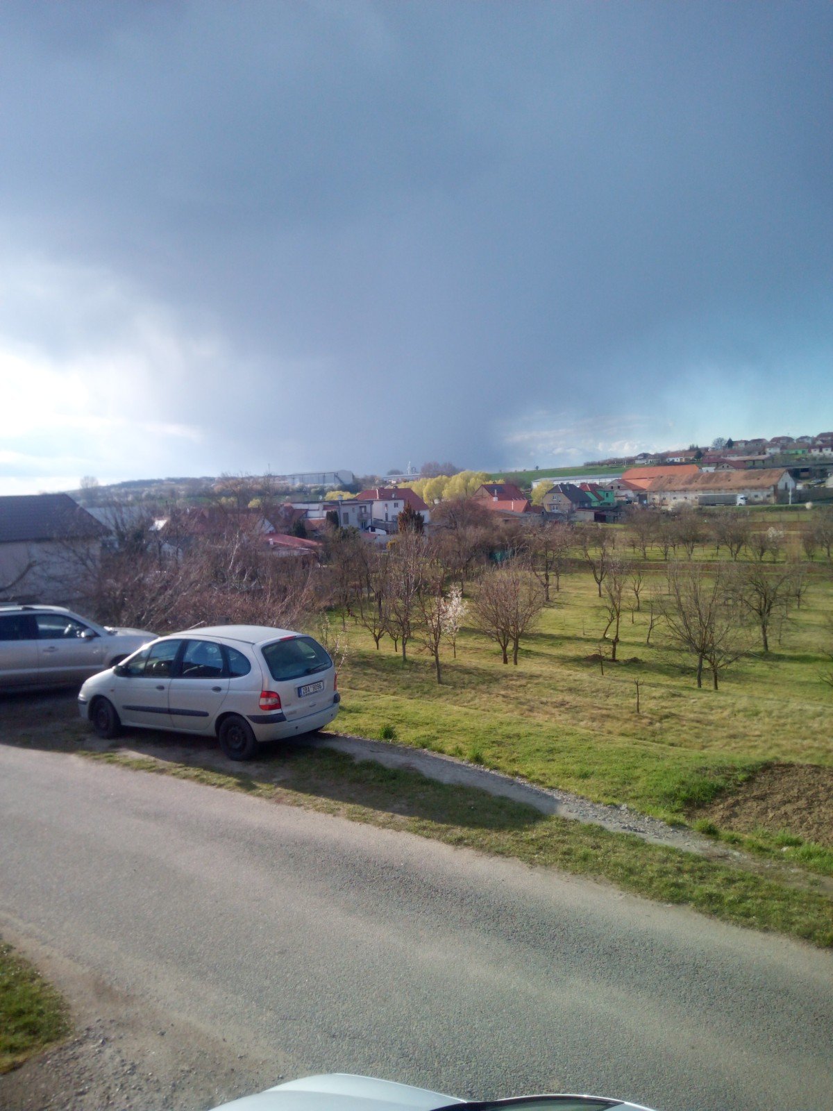 2022 04 10 v 17:40:43 nad hlavou sluníčko - nad střechou černé mraky na ústupu teplota klesla na +4°