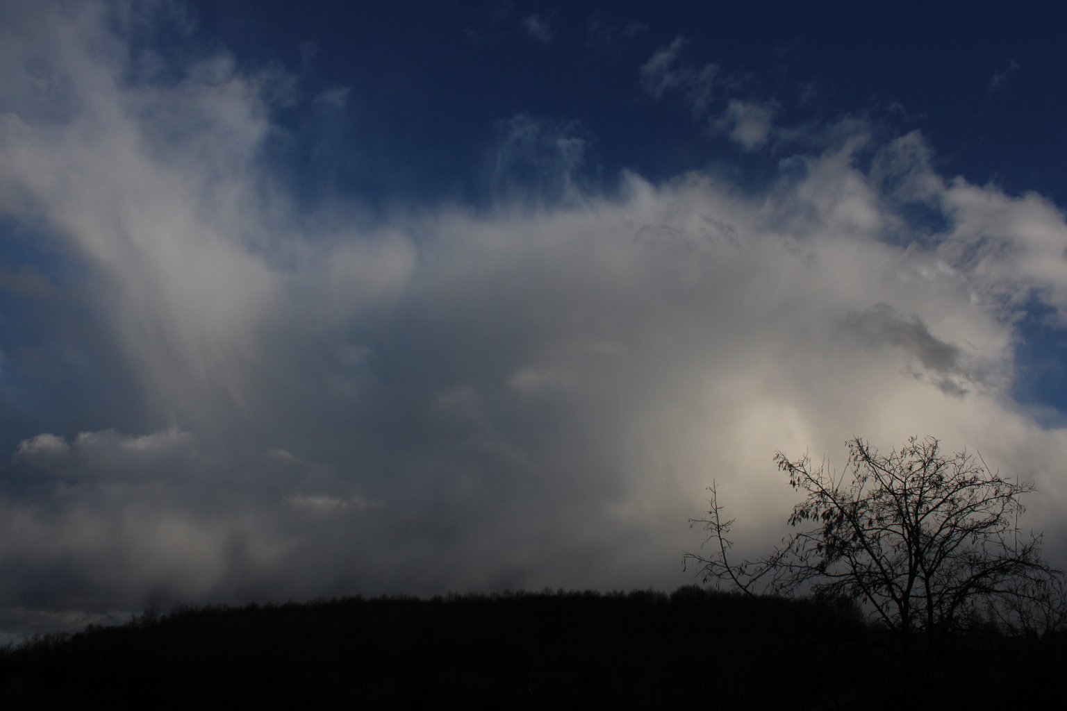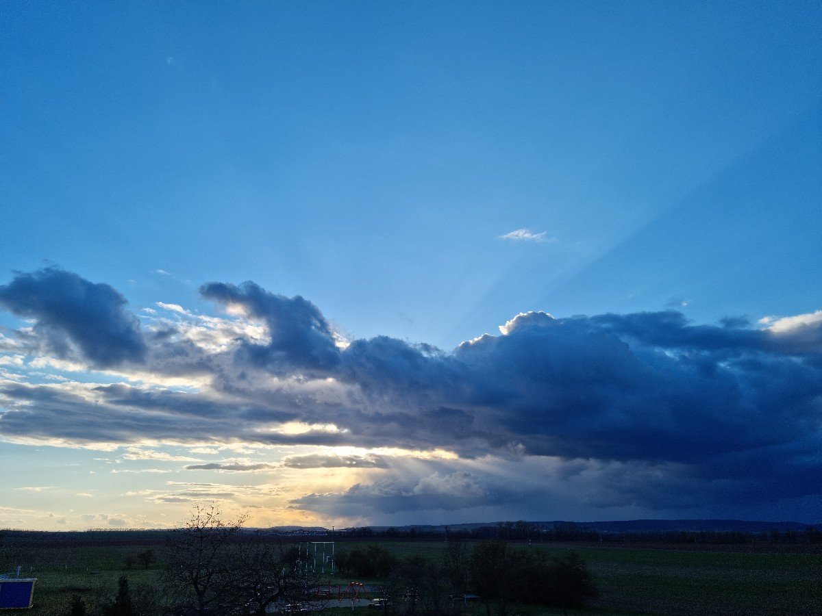 Vítr mírný, nárazy 10,7 m/s, vlhkost 47%. Další přeháňka za humny.