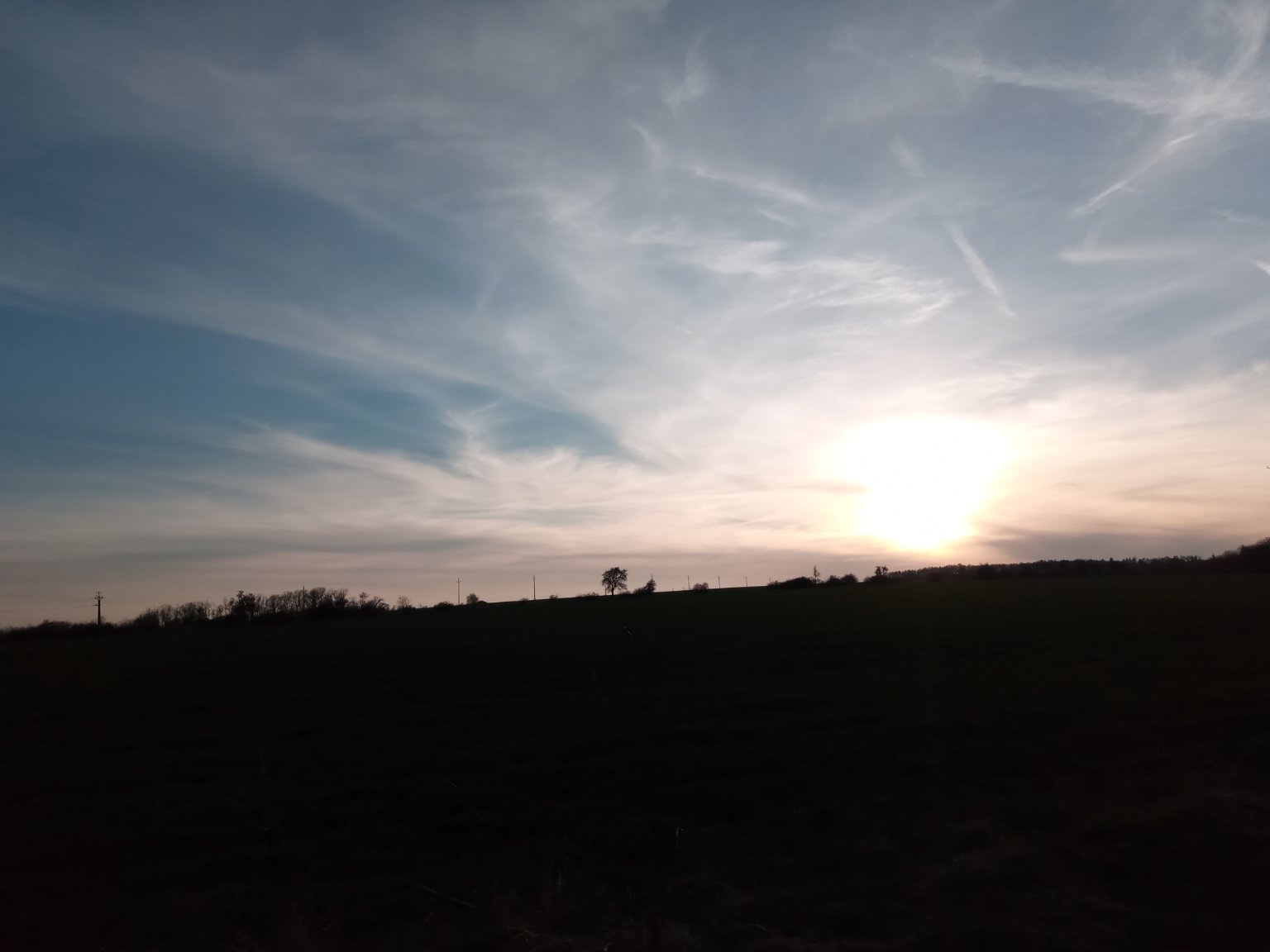 9,8°C, Oblačno až zataženo. Slunce osvětluje kopce