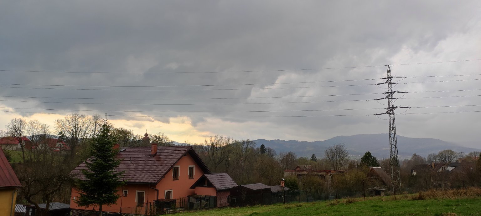 Srážkové pruhy v dálce.