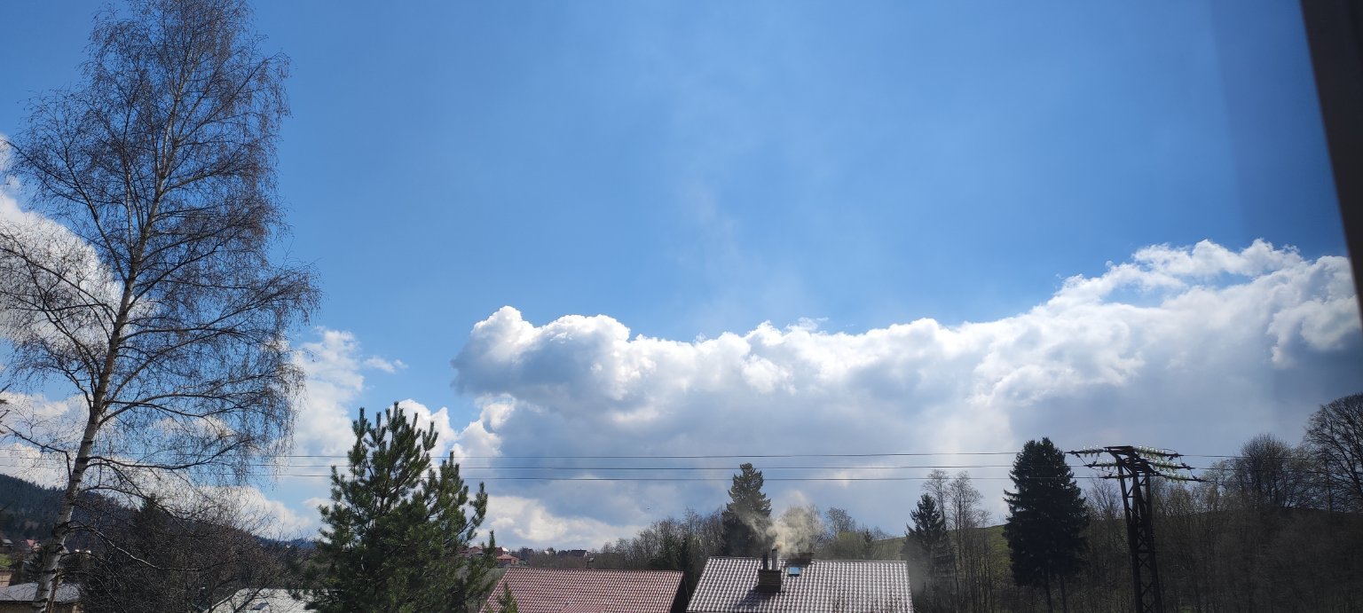 Oblačno, prehánka, snehové krupky, veľkosť 0,5 mm.