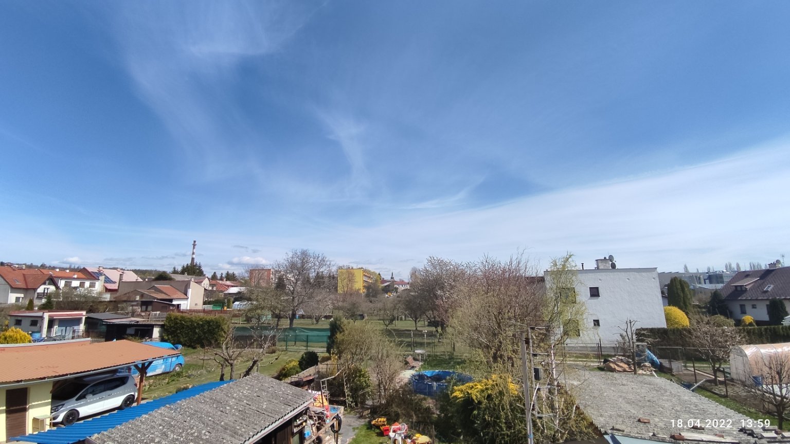 -°C, Oblačno. V dálce přeháňka.