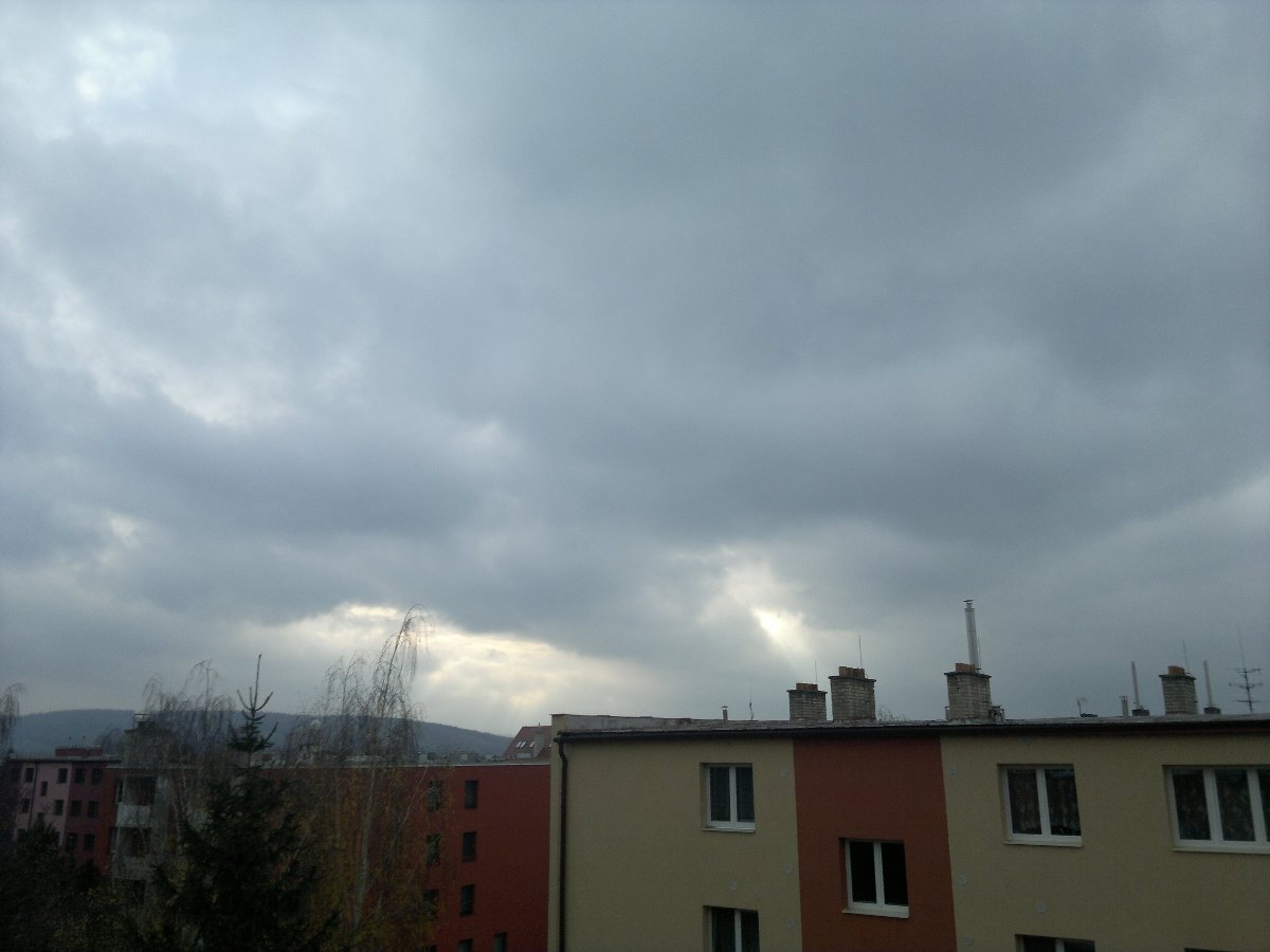 Mlha , viditelnost na 100 m, tlak 1000 hPa, srážky 1,5 mm, vítr JZ.