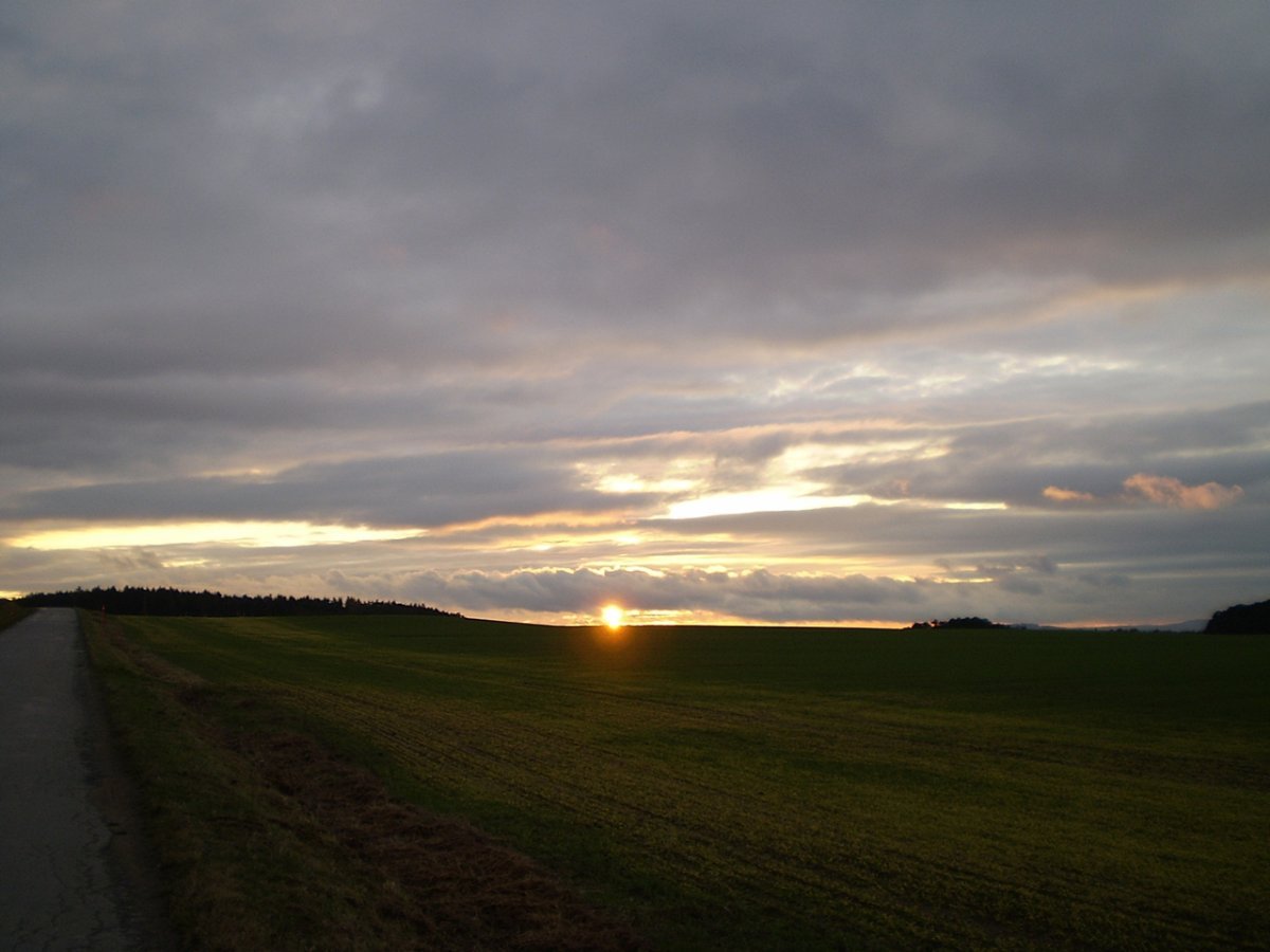 Klidno,tlak 1001hPa,vlhkost 82%.Obloha krátce po západu Slunce.