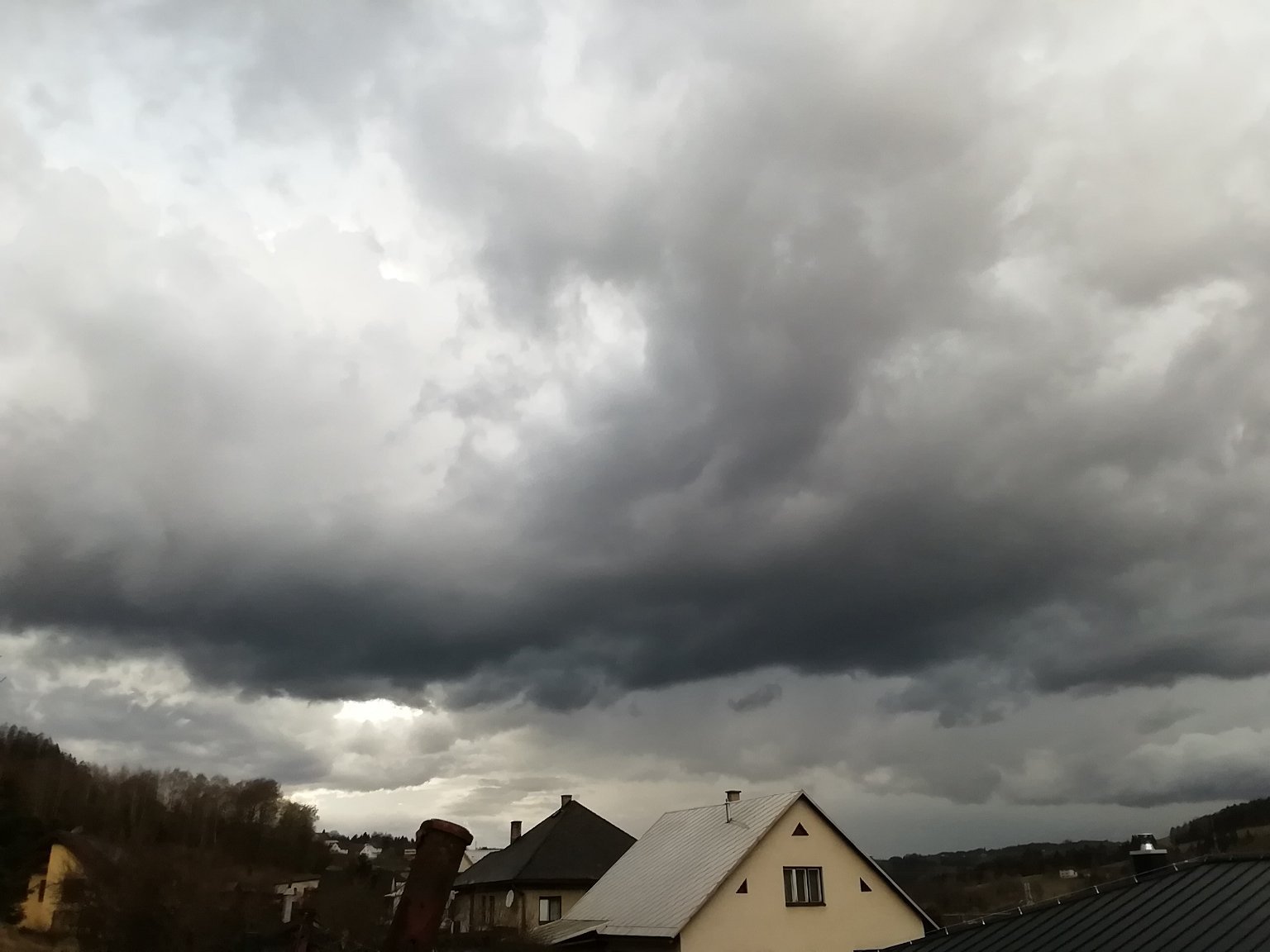 12,6°C, Velmi slaba dešťová přeháňka. Kupovitá oblačnost na konec bouřkového dne