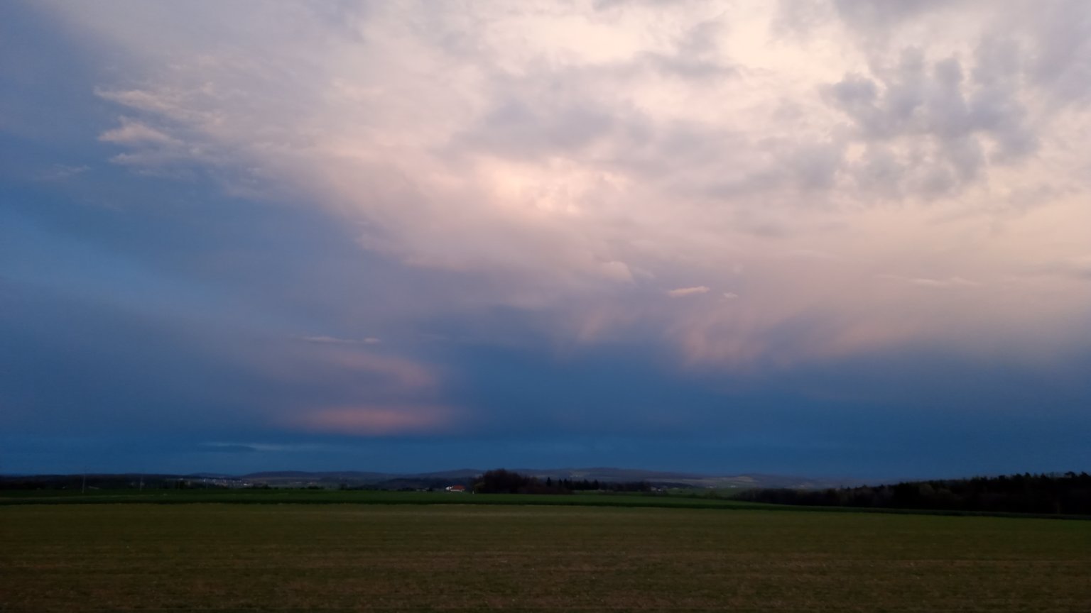 Právě začíná znovu pršet, ale vypadá to jen na pár kapek. Pořád je venku celkem teplo, také díky větru, který se úplně uklidnil.