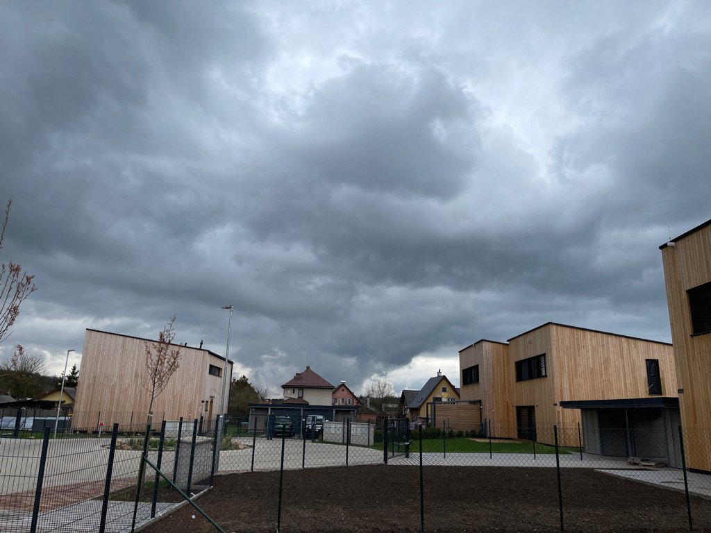 Je zataženo a začalo zas slabě pršet. Stále je bezvětří.