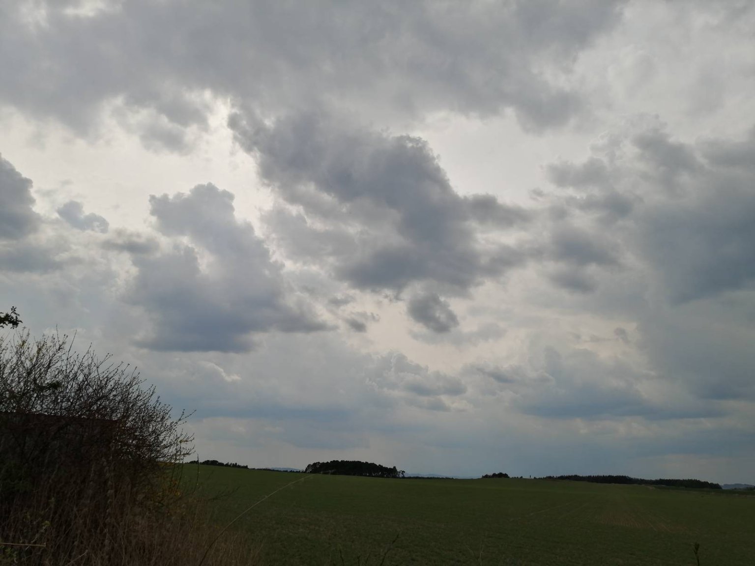 -°C, Zataženo. Přeháňka v dálce a údolí Štramberku.