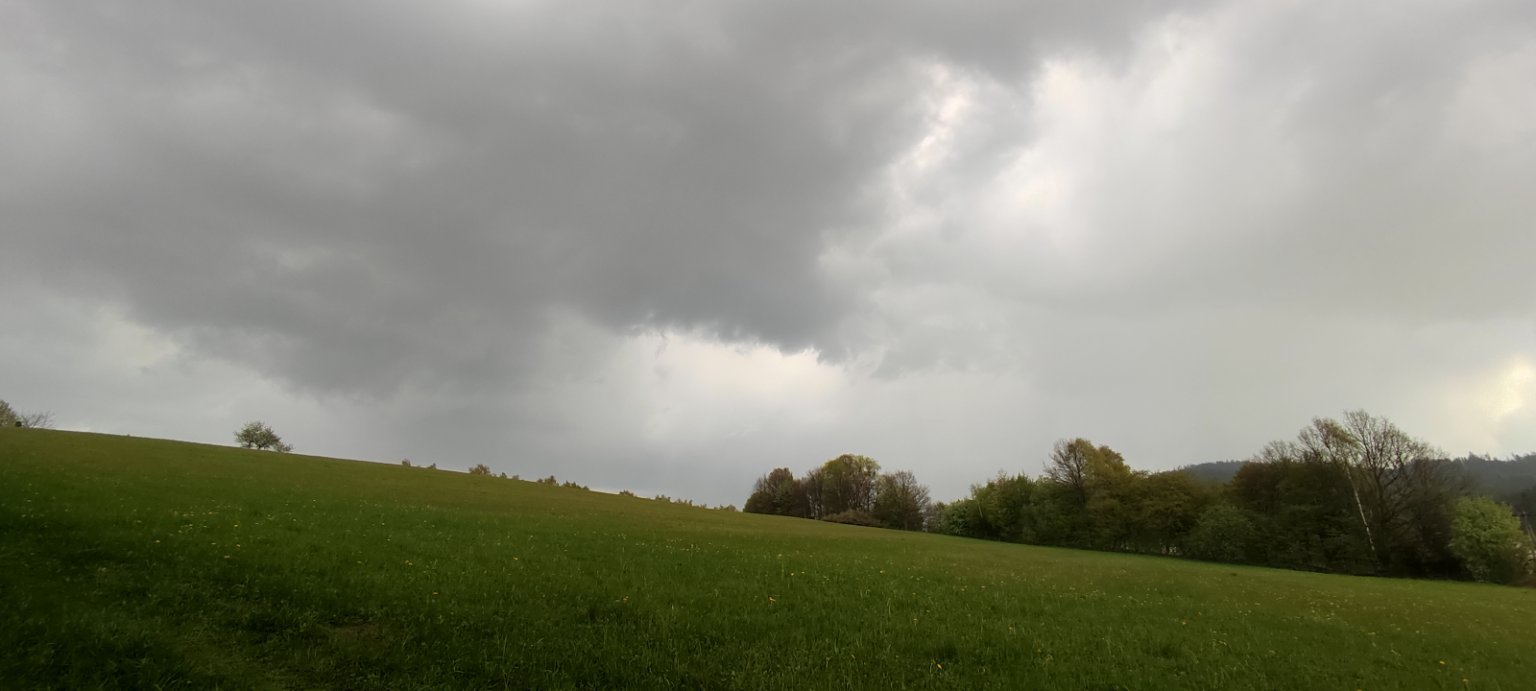Černo, bude to přeháňka, pár jader, jedna na severovýchodni straně