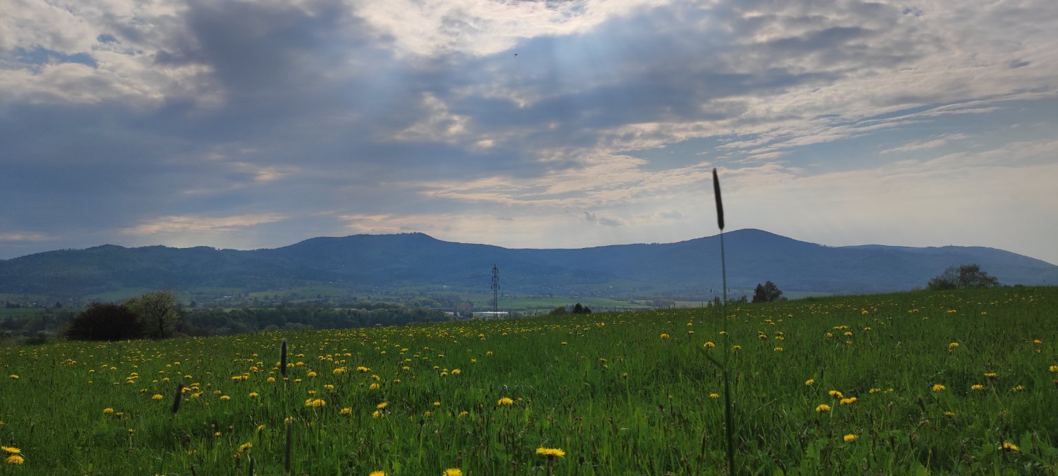 17,8°C, Oblačno až zataženo. Vše to žluté na louce jsou Pampelišky! ?