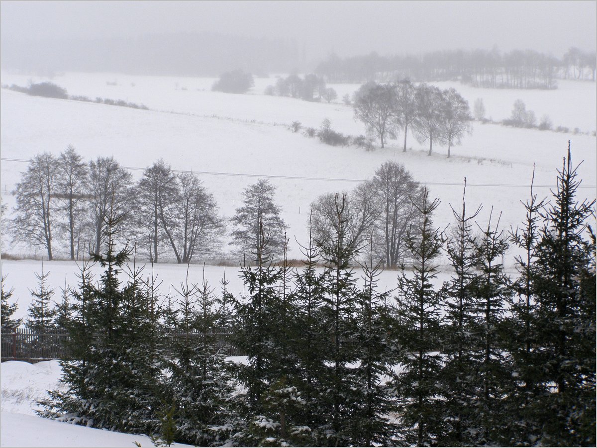 Pomalu začíná poletovat sníh,vlhkost 79 % / tlak 1027 hPa .