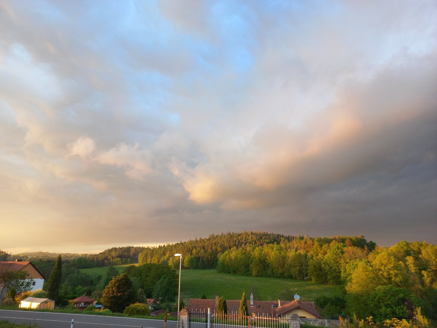 Aktuálně převažuje většinou oblačno až skoro zataženo a slabounká dešťová přeháňka a fouká většinou vánek