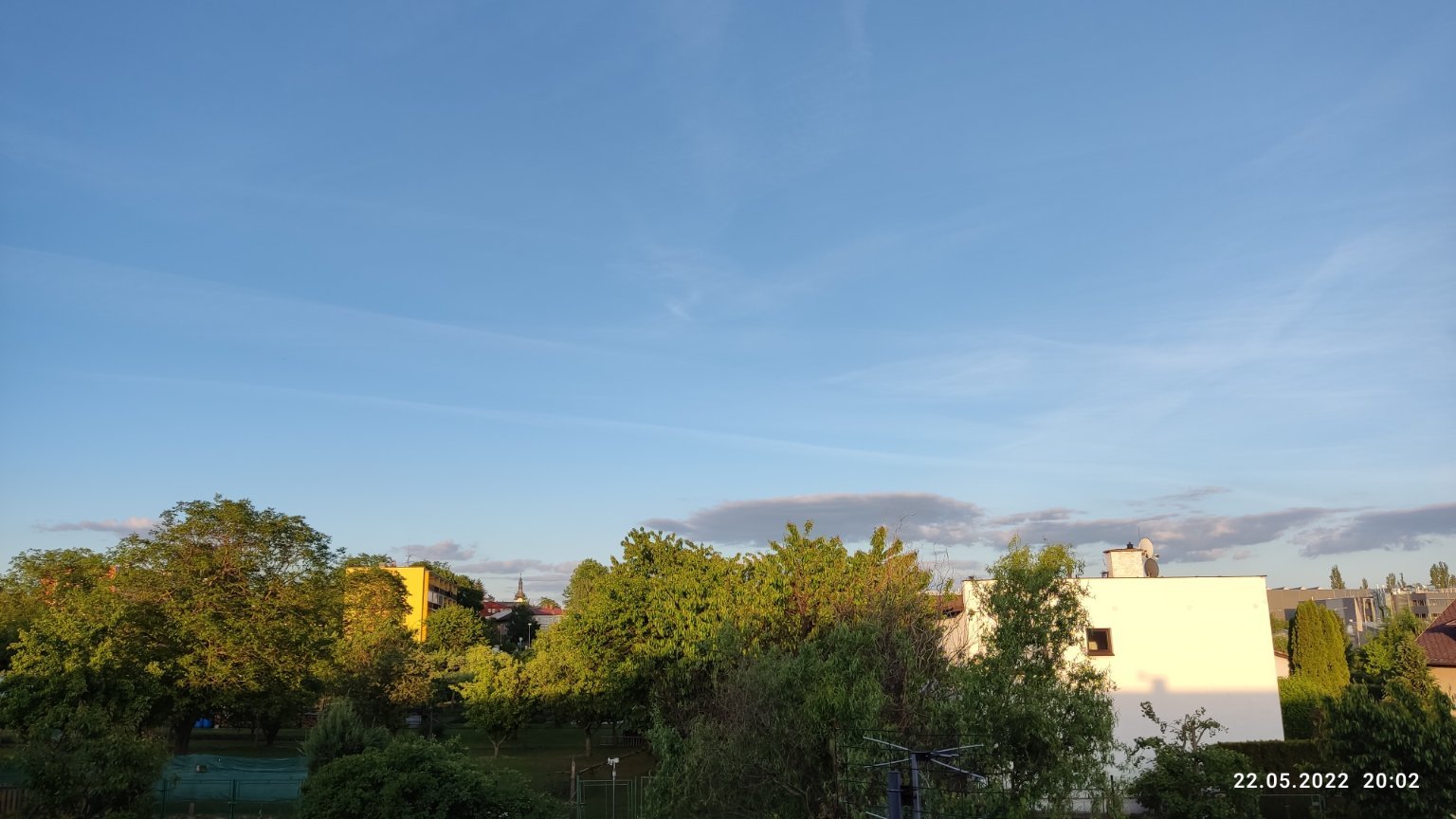 Pěkný, i když nijak teplý květnový večer. Vane slabý severovýchodní vítr, tlak: 1012hPa. Je velmi čisté ovzduší. Množství prachu ve vzduchu nepřesahuje 5 mikrogramů na krychlový metr.