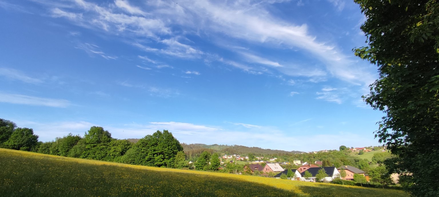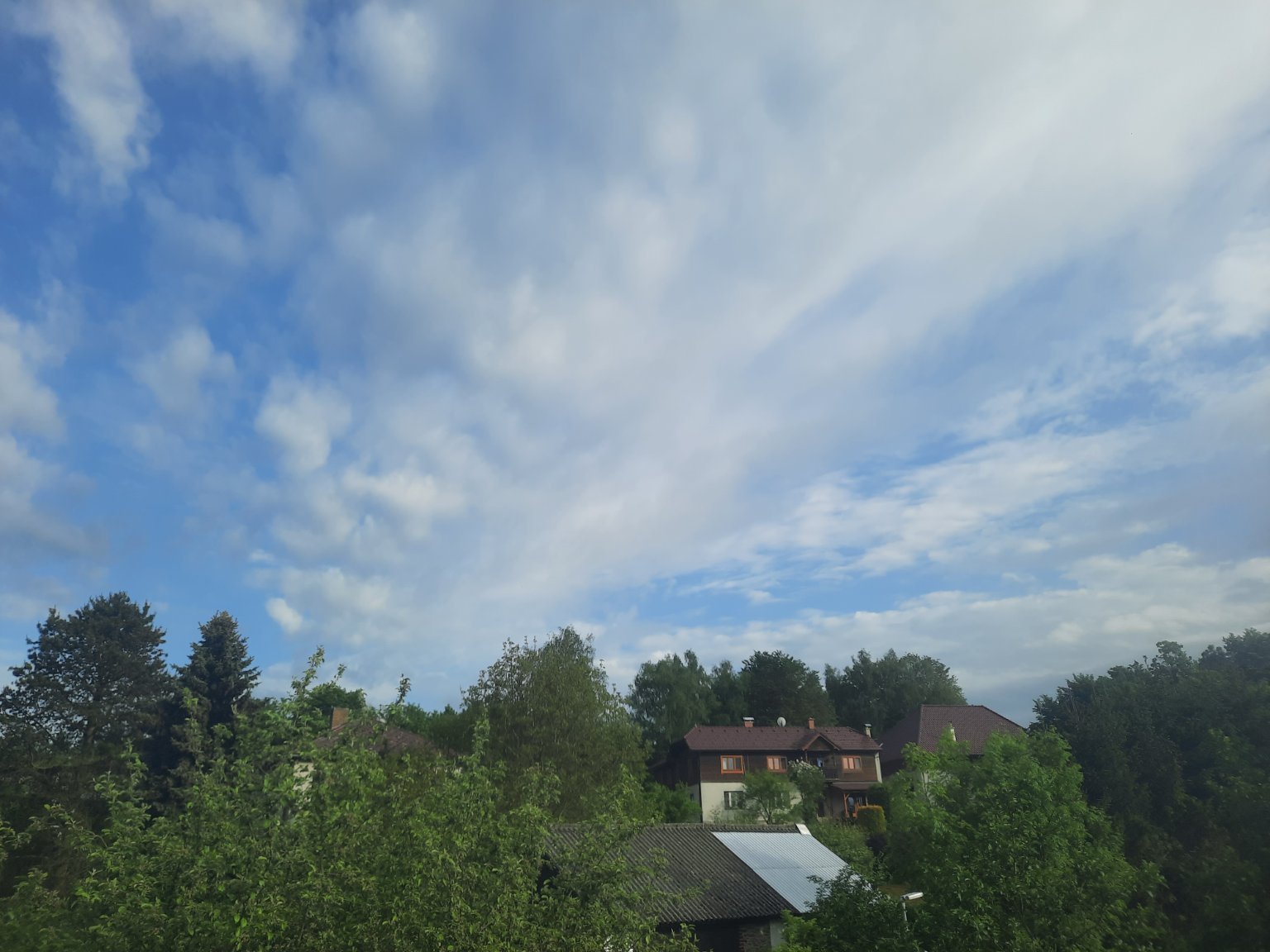 Vlhkost 31%, bezvětří. Zvláštně zřasená oblačnost.
