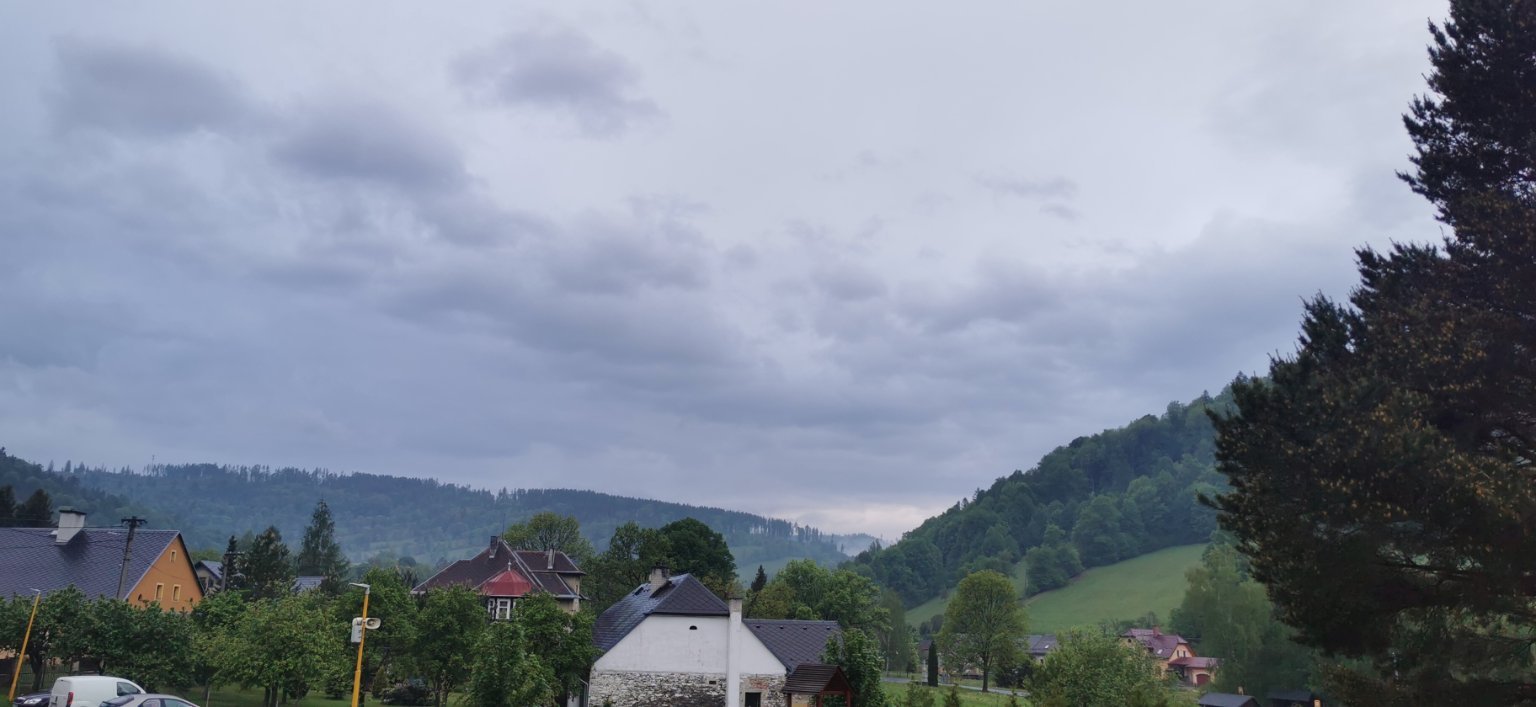 17,3°C, Velmi slaba až slabá dešťová přeháňka. Přihnala se přeháňka.