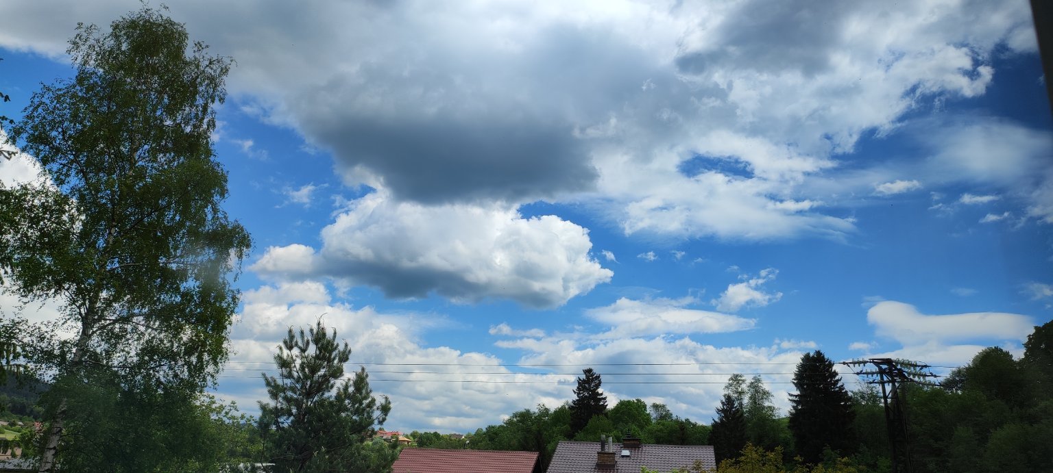 Skoro zataženo, mírný Z vítr, tlak 1021 hPa, vlhkost 64%
