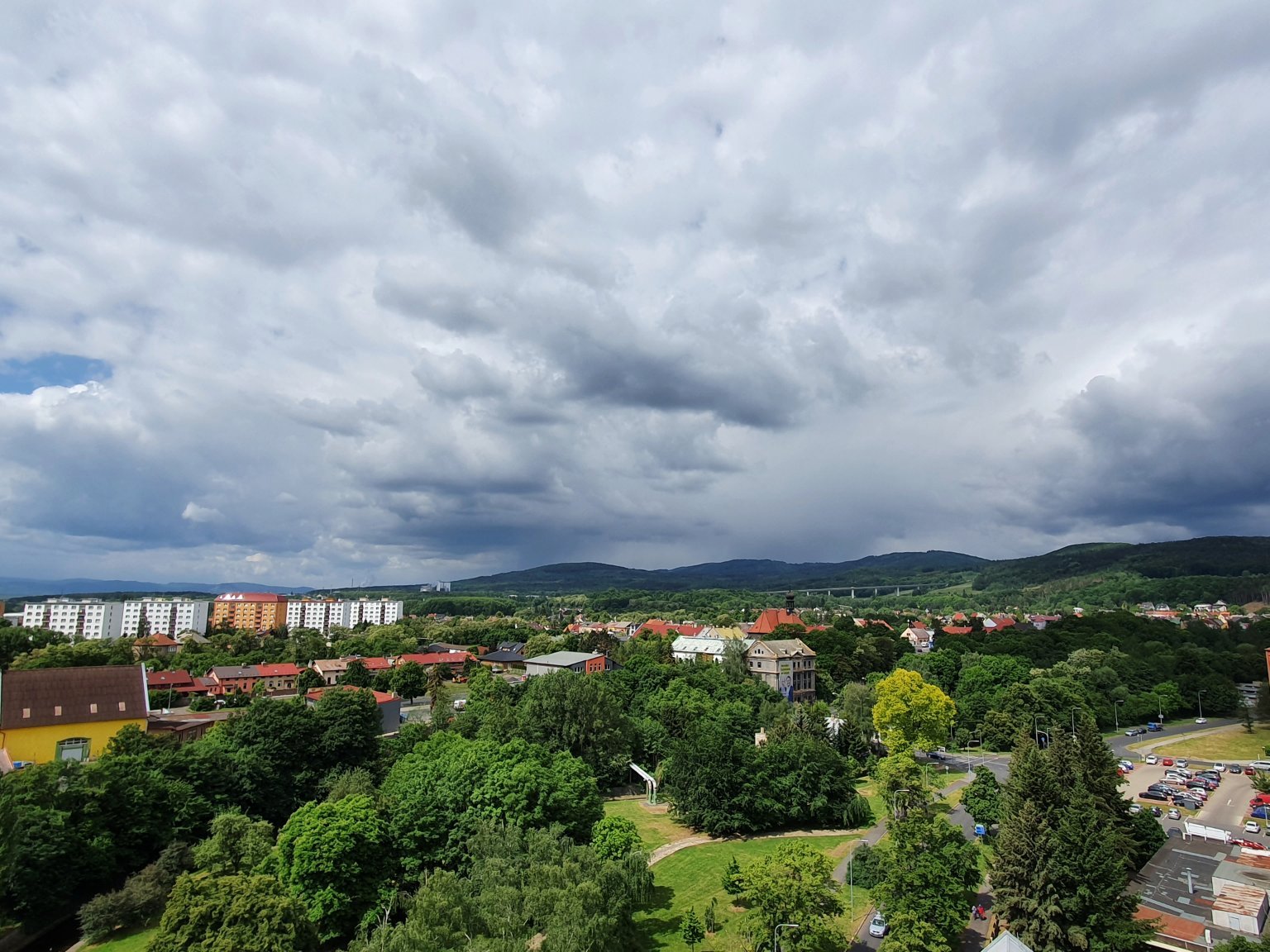 Zase střední oblačnost ale i kupí se. Parasutisti