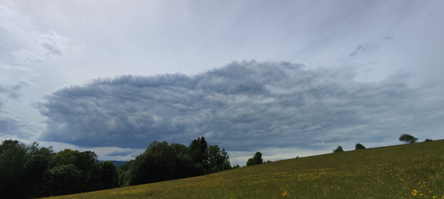 Je zataženo a od jihu se žene déšť. Vítr vane mírný.