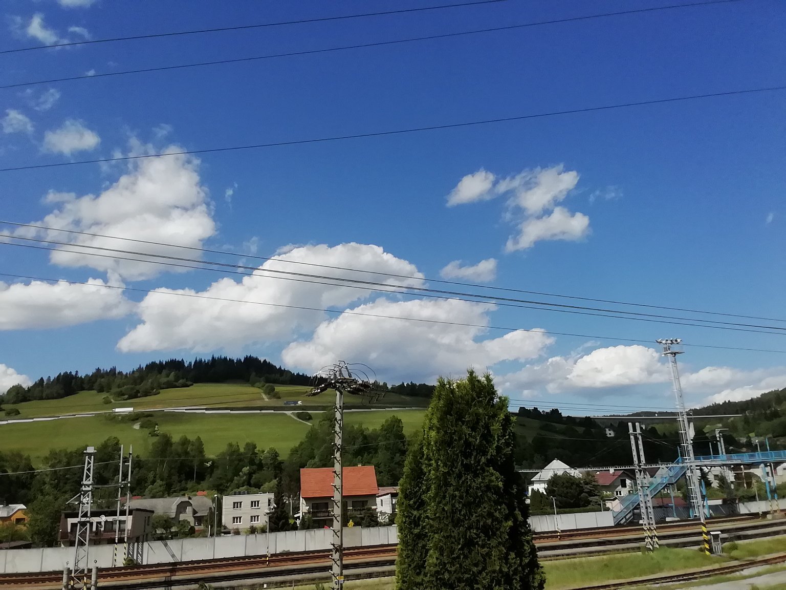 oblačno, po 13h dešťová přeháňka, slabý až mírný vítr, 22°C