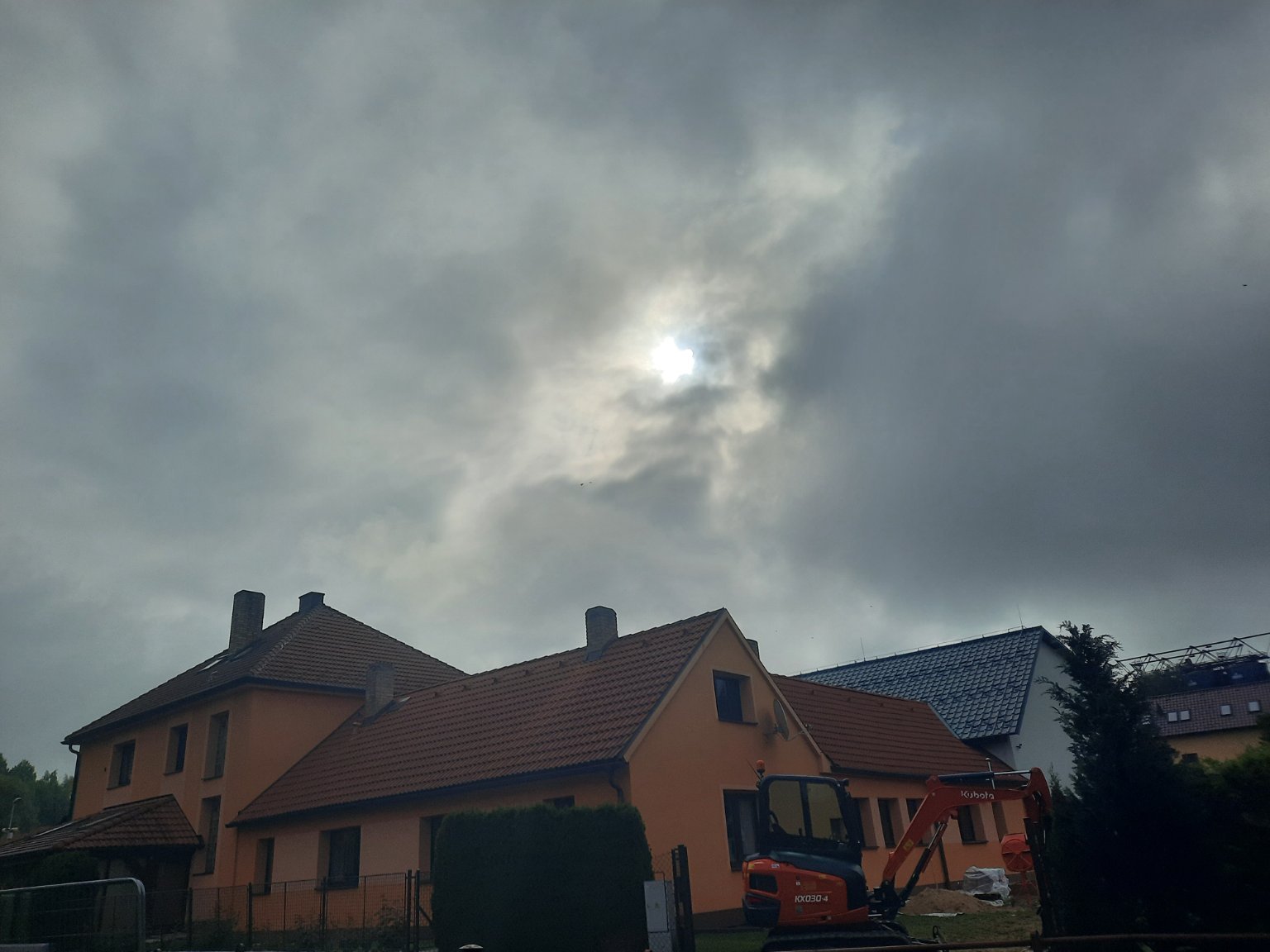 Zataženo až skoro zataženo, vlhkost 55%, vánek. Po nočním dešti spadl necelý centimetr vody a vydatnější srážky jsou v nedohlednu. Bouřka žádná, bylo slyšet jen tři vzdálené hromy. Bílé Karpaty potvrdily svůj um a zadusily bouřkovou baráž ze Slovenska.