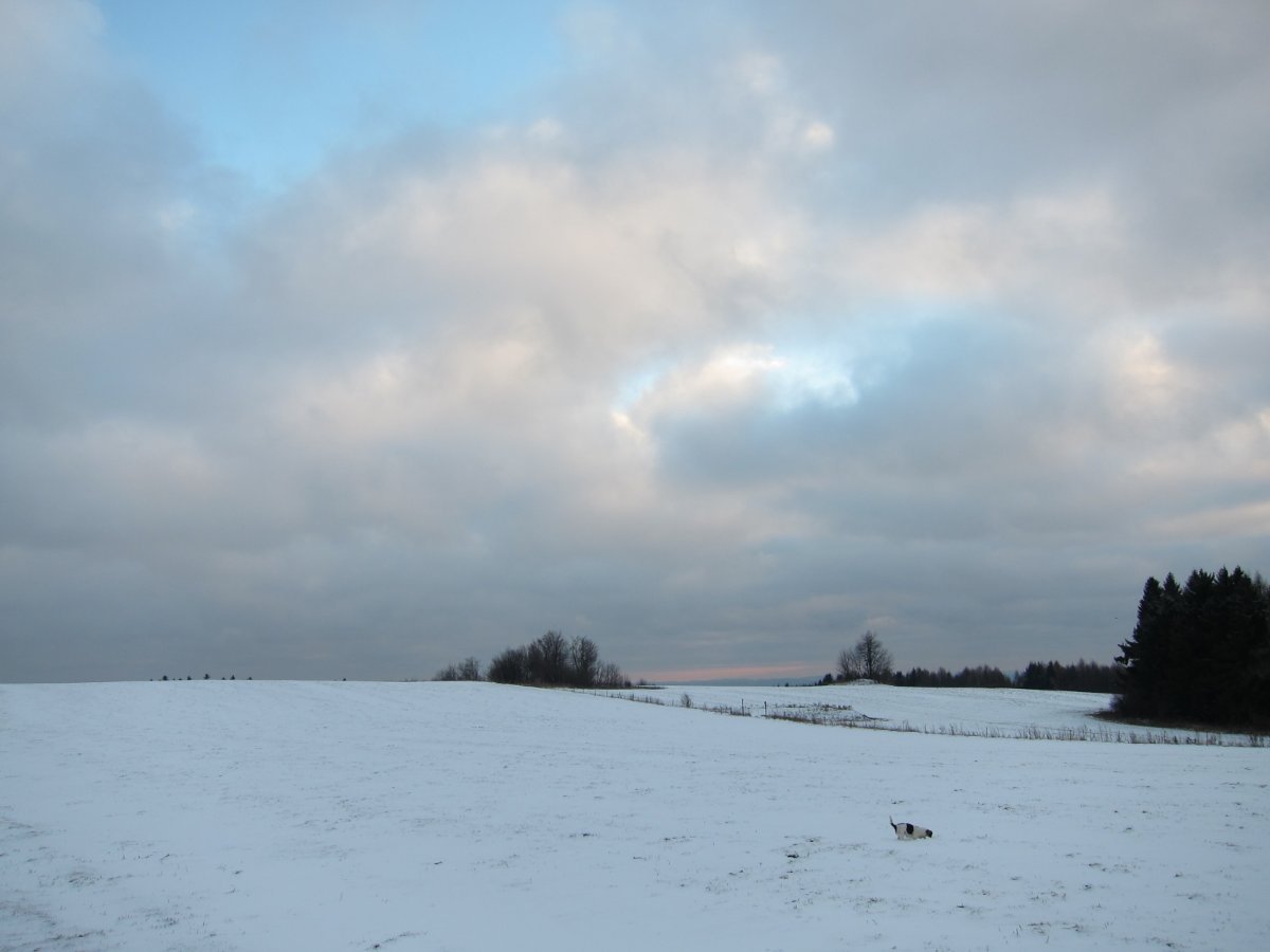 Krásné odpolední jasné počasí, slunečno. Nyní už díky jasné obloze pod bodem mrazu.