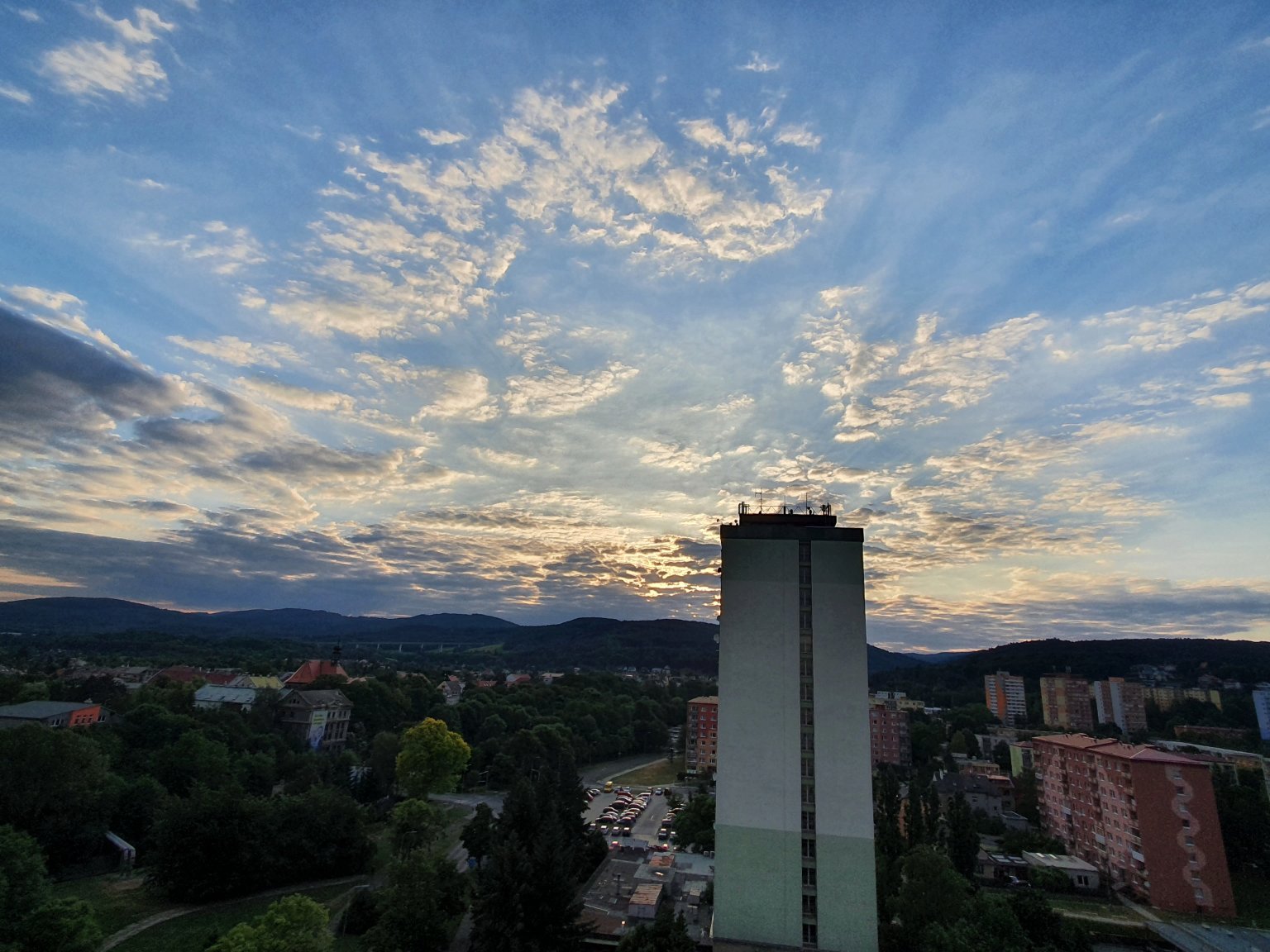 Je skoro jasno a bezvětří. Min teplota 10,3 st max teplota 26,1 st.
