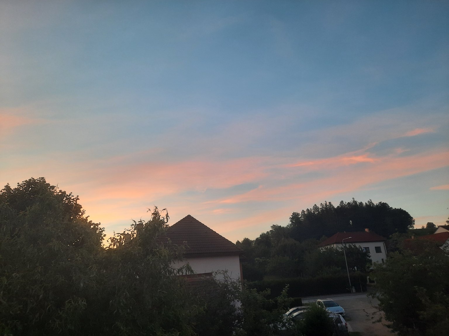 Je skoro jasno a vane slabý proměnlivý vítr. Min teplota 6,9 st max teplota 20,4 st.