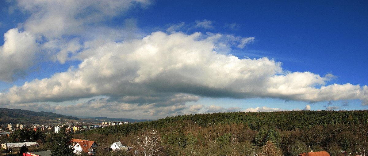 Oblačnost 22,3%, zákl.mraků 1722m, tlak 1017,8hPa(klesá), dohlednost 25km, vlhkost 78,9%, mírný Z vítr 279° 7,1m/s(4 Bft).
