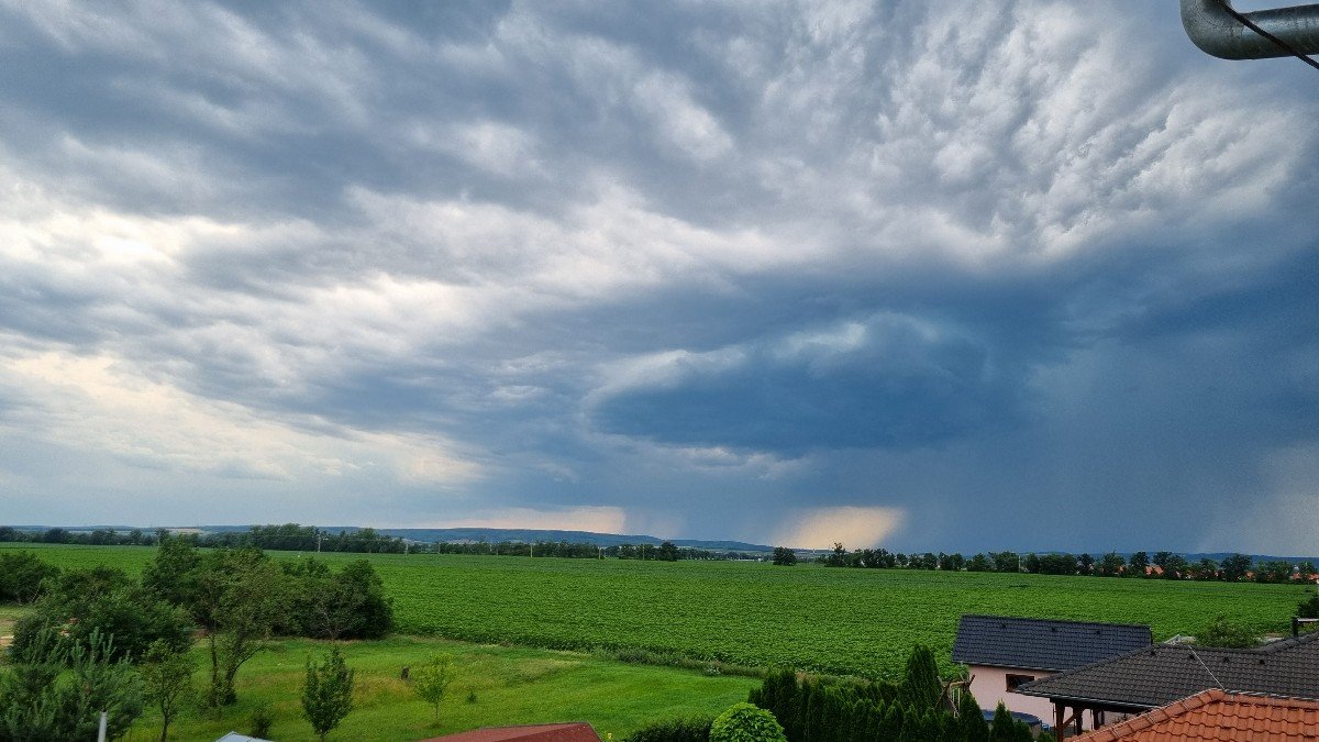 Rychlé ochlazení, Velká bouře s lijákem, před bouří silný narazový vítr