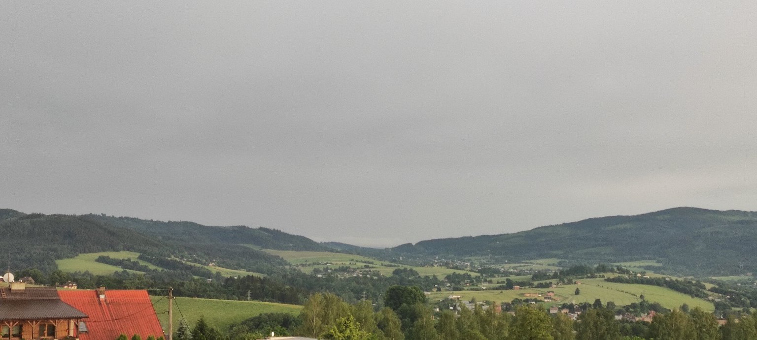 14,4°C, Vzdálená bouřka. Oblačnost se protrhava. Rozpadly Cumulonimbus v dálce.