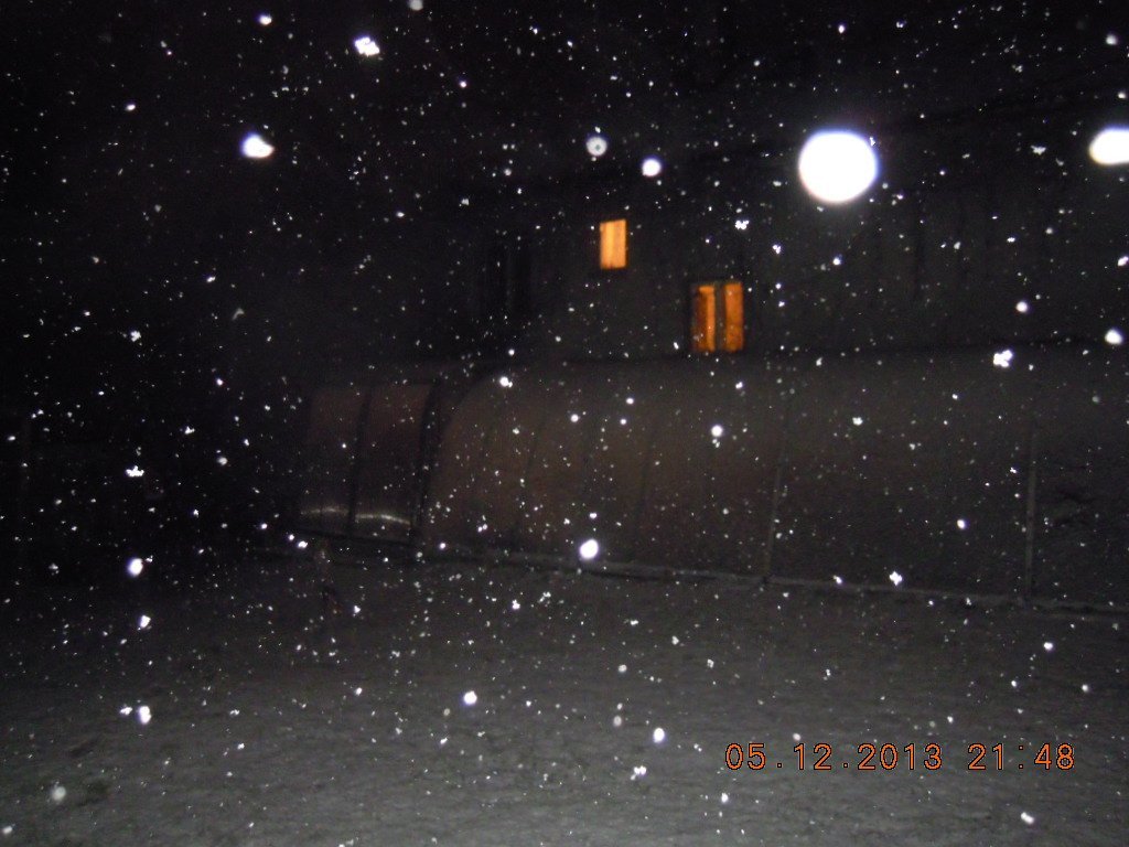 Padá sníh,ale nemrzne,vlhkost 83 %/ tlak 1009 hPa.
