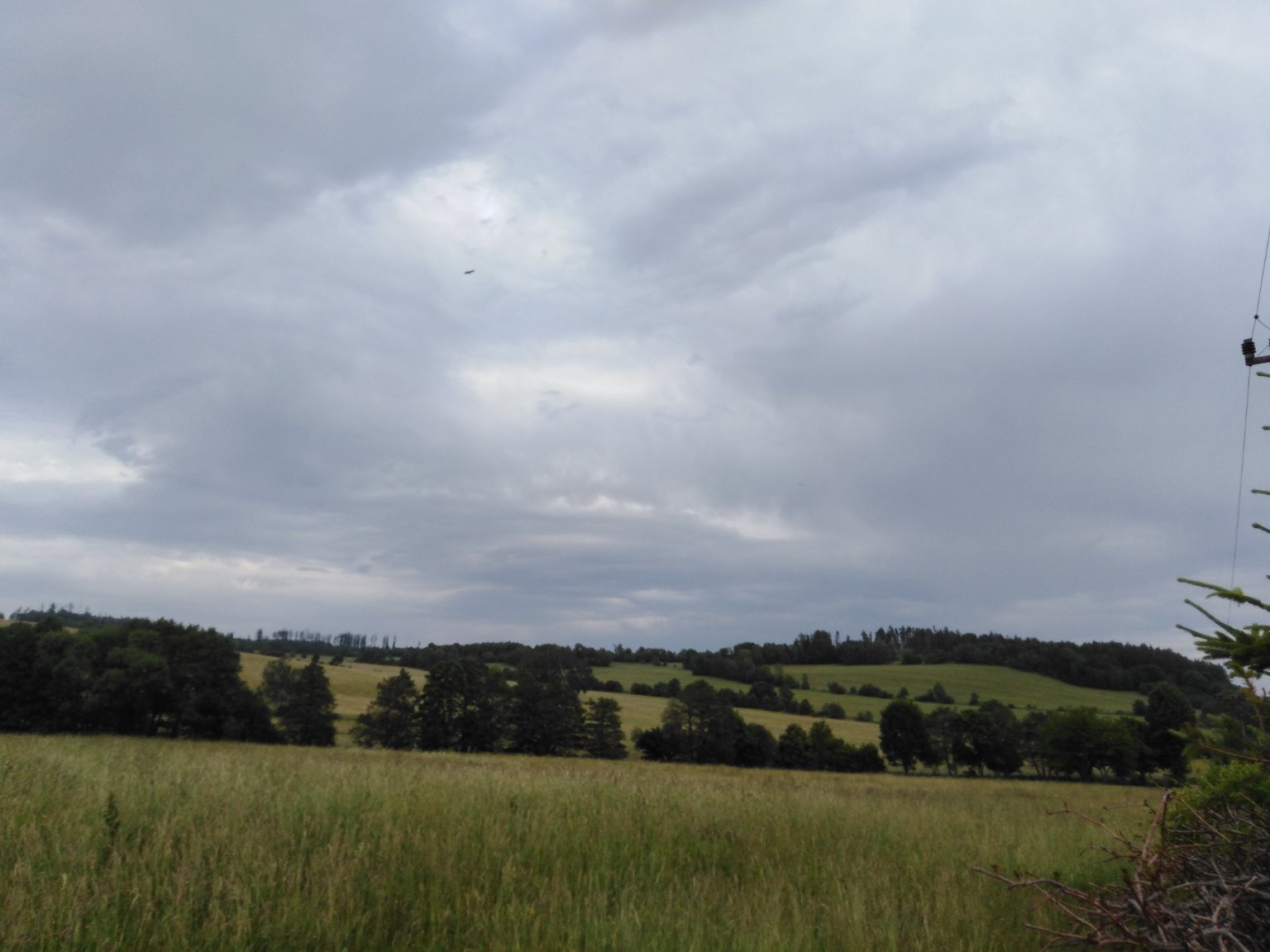 Žene se další bouřka,podle radaru slabší než ta v poledne,J vítr 7 km/h,tlak 1011 hPa,vlhkost 77%