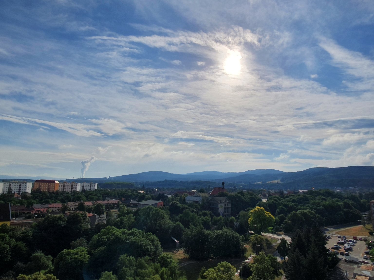 Aktuálně převažuje většinou skoro zataženo až oblačno a slabá dešťová přeháňka a fouká většinou slabý vítr