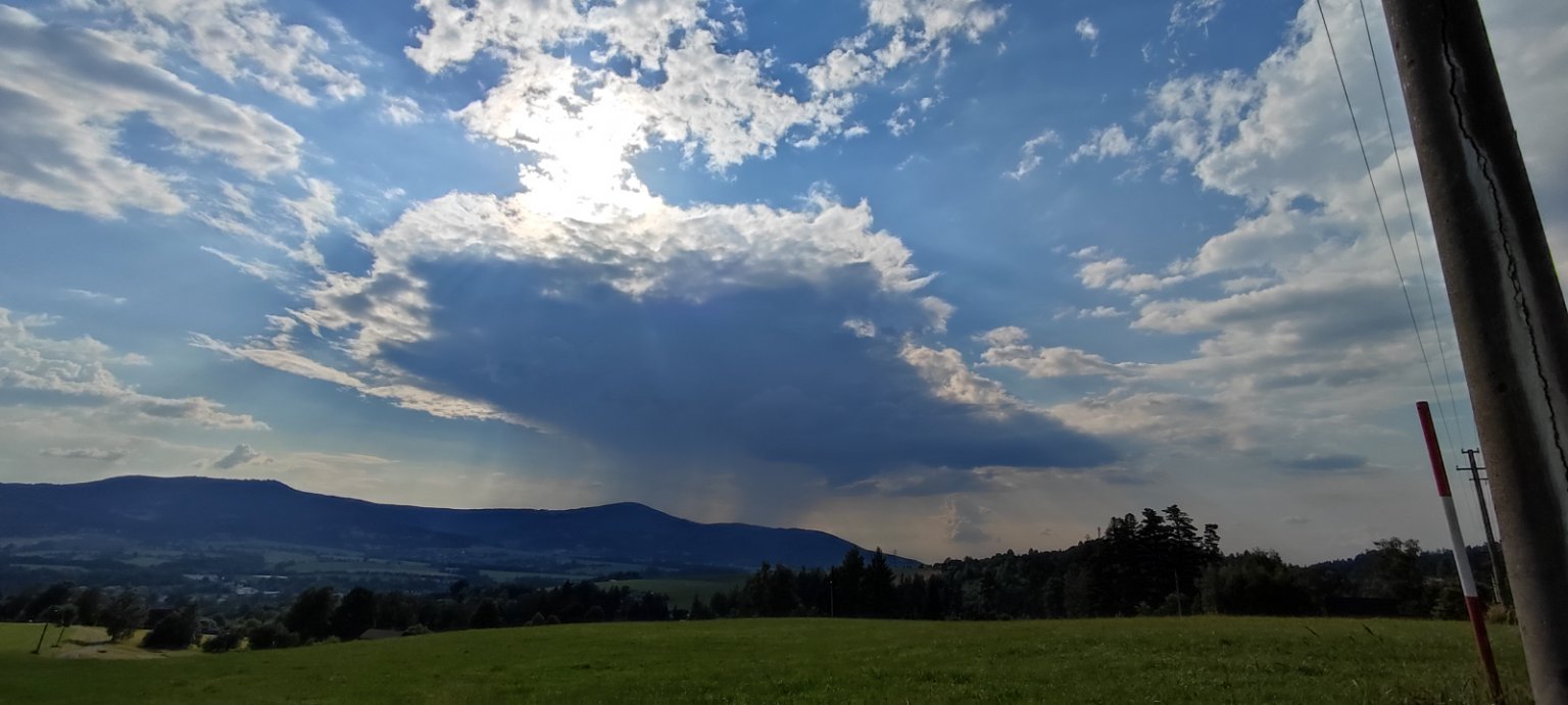 25,7°C, Oblačno. Cumulonimbus v dálce.