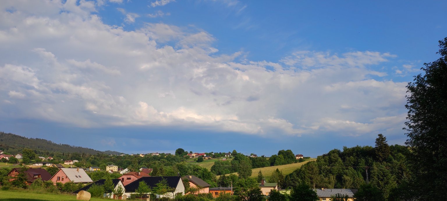 26°C, Polojasno. Cumulonimbus v dálce. Jsou tam prý blesky, ale hřměni jsem neslyšel...
