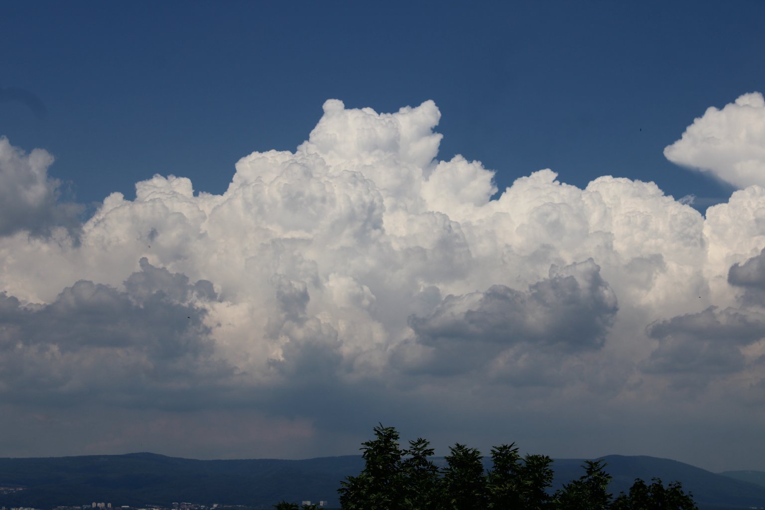 29,4°C, Polojasno až oblačno. Cumulus Mediocris. Nejvyšši dnešni teplota byla 29,6°C.