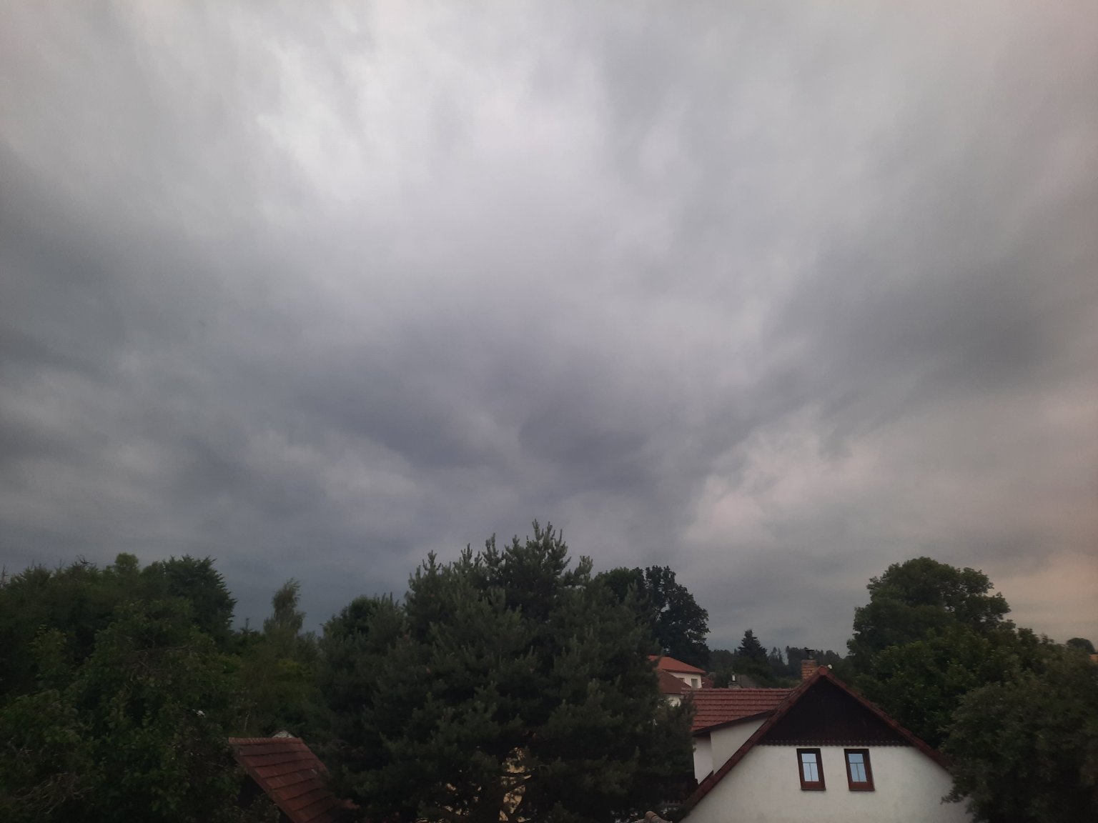 Aktuálně převažuje většinou skoro zataženo až oblačno+bouřka v dálce a fouká většinou vánek