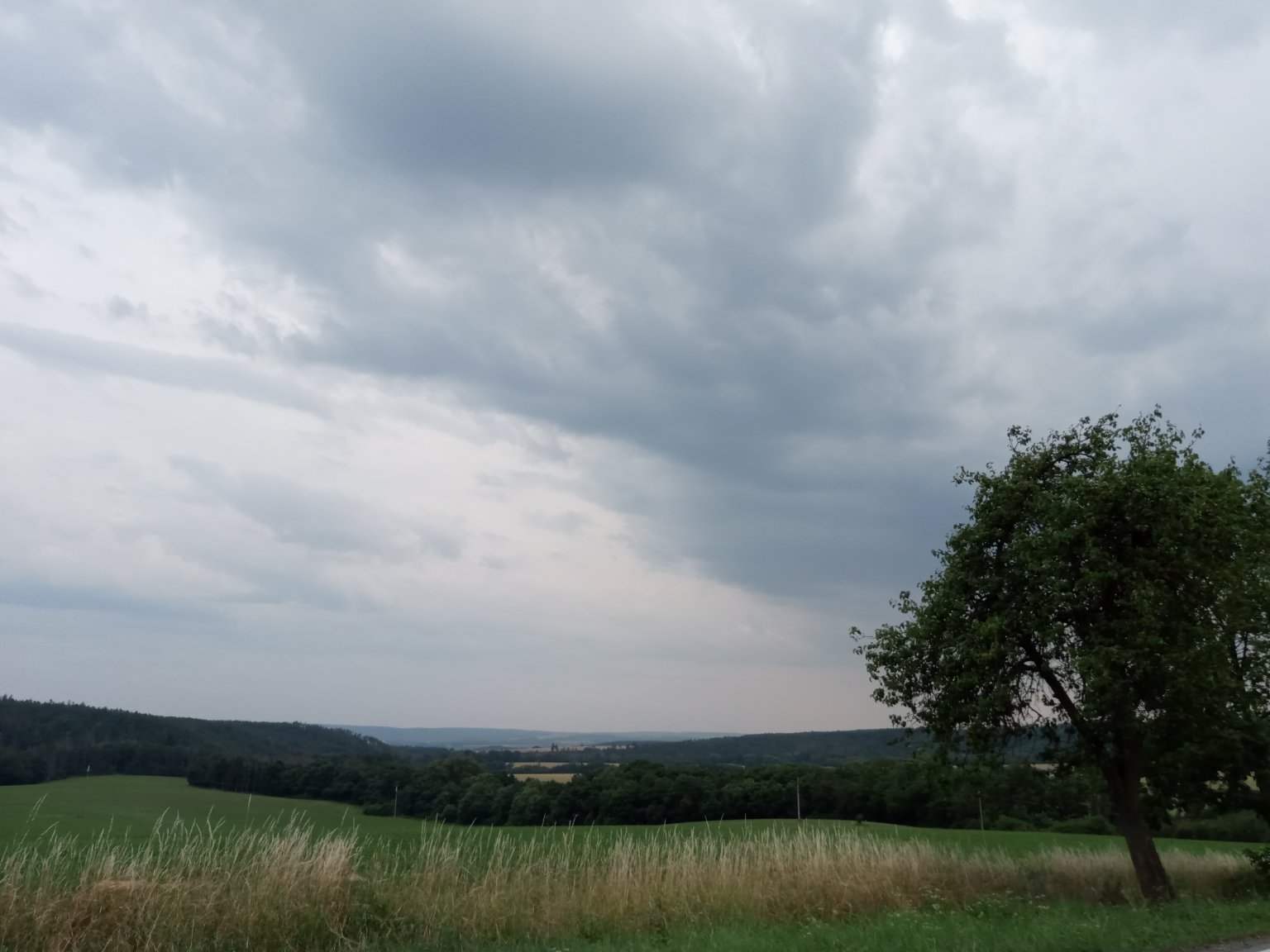 Skoro zamračené, slabá dažďová prehánka, slabá búrka
