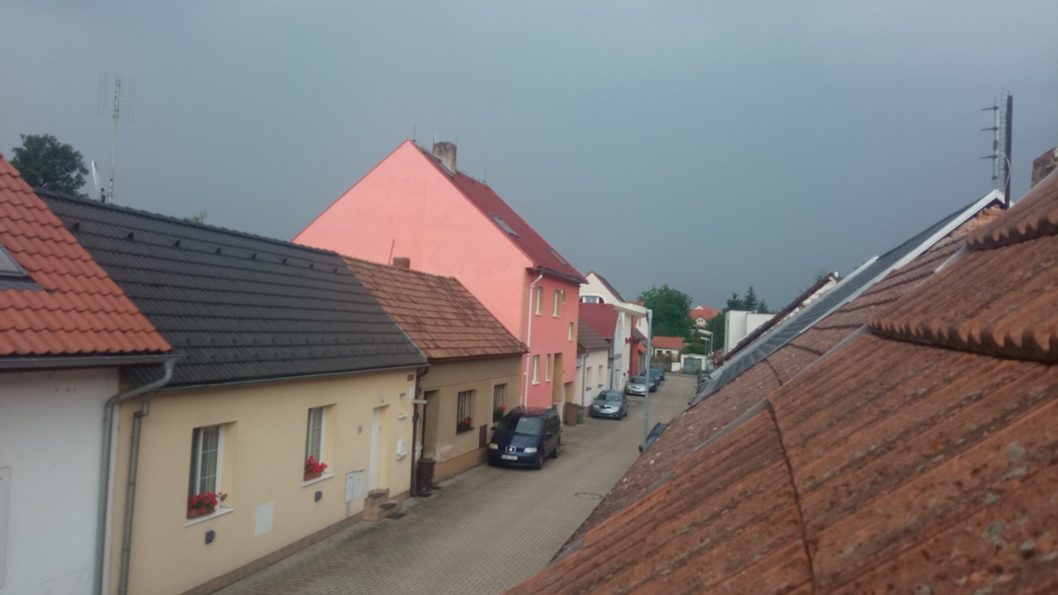 Foto směr Z. Takový menší déšť. Ale už trochu fouká. Dusno se mírní konečně.