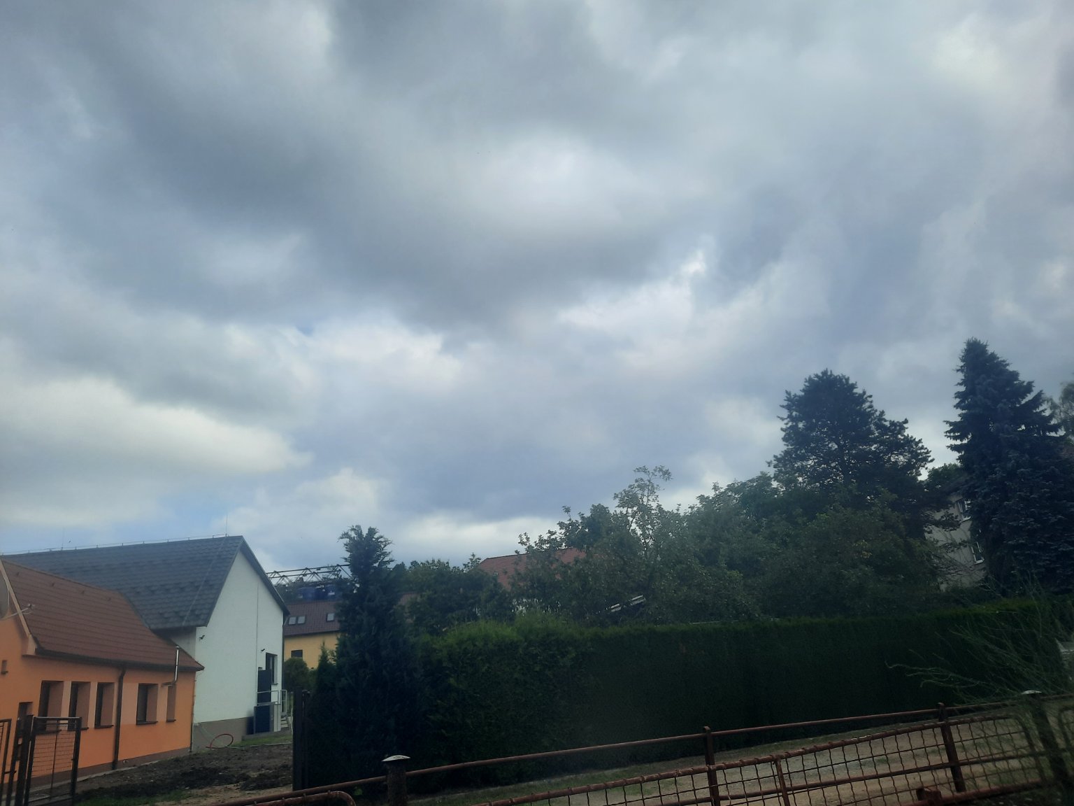 Vlhkost 33%, vánek. Na Z a SZ stoupají kumuly. Už druhý den těsně pod 35°C, ze včerejška na dnešek opět tropická noc, už třetí tento týden.