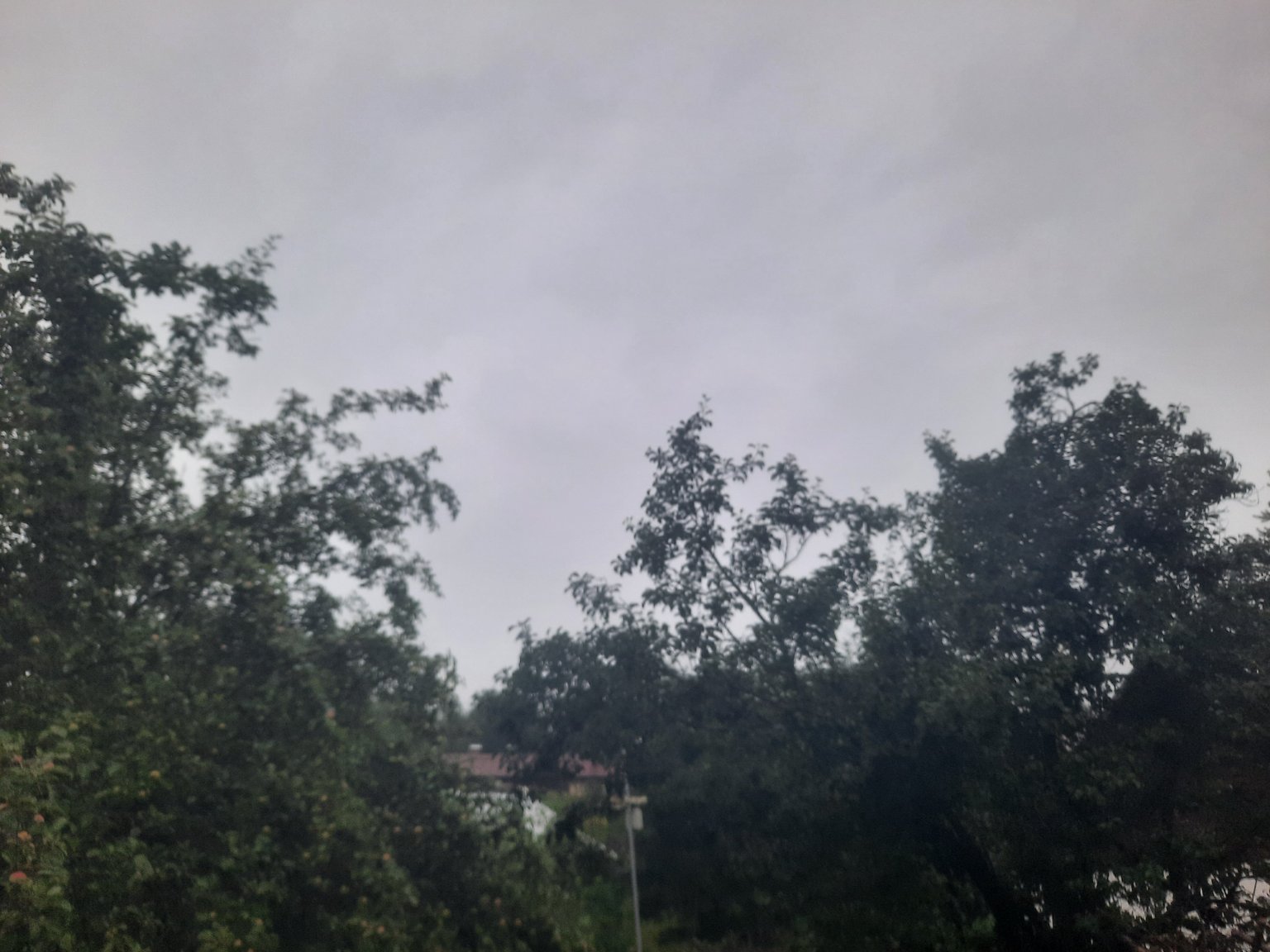 Je zataženo a vane mírný vítr. Od jz se žene pás silného deště.