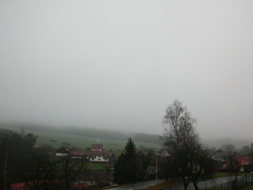 Oblačnost 41,5%, zákl.mraků 986m, tlak 1032,2hPa(stoupá), dohlednost 25km, vlhkost 87,6%, slabý ZSZ vítr 281° 4,5m/s(3 Bft).