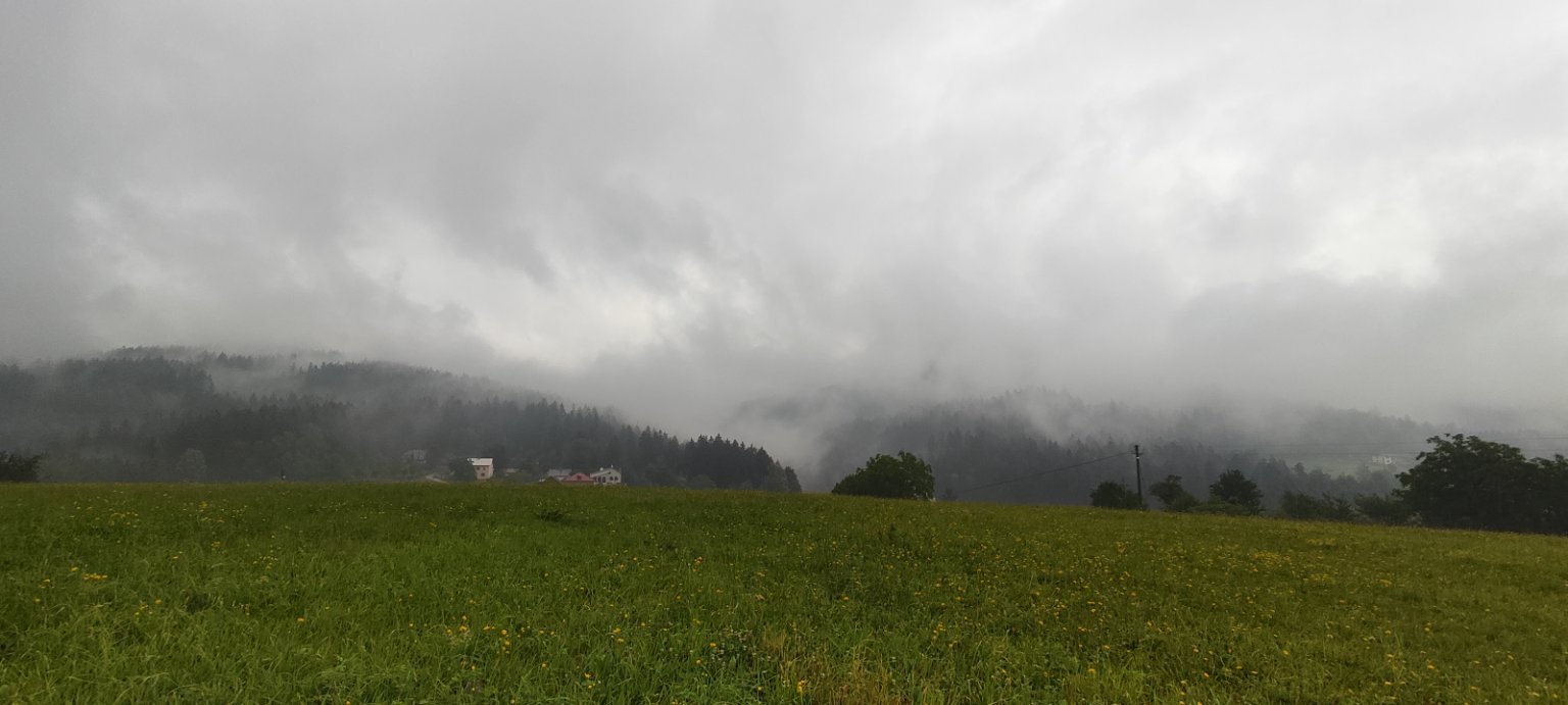 18,3°C, Slabý déšť. Zatím napršelo 12,2mm srážek.