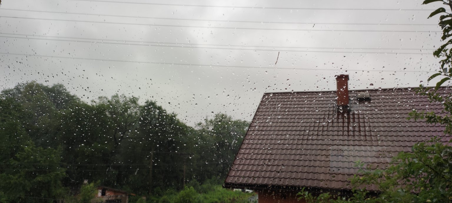 15,9°C, Mírný až silný déšť. Tohle byl ještě před pár minutami chodník... Zatím napršelo 24,7mm srážek!