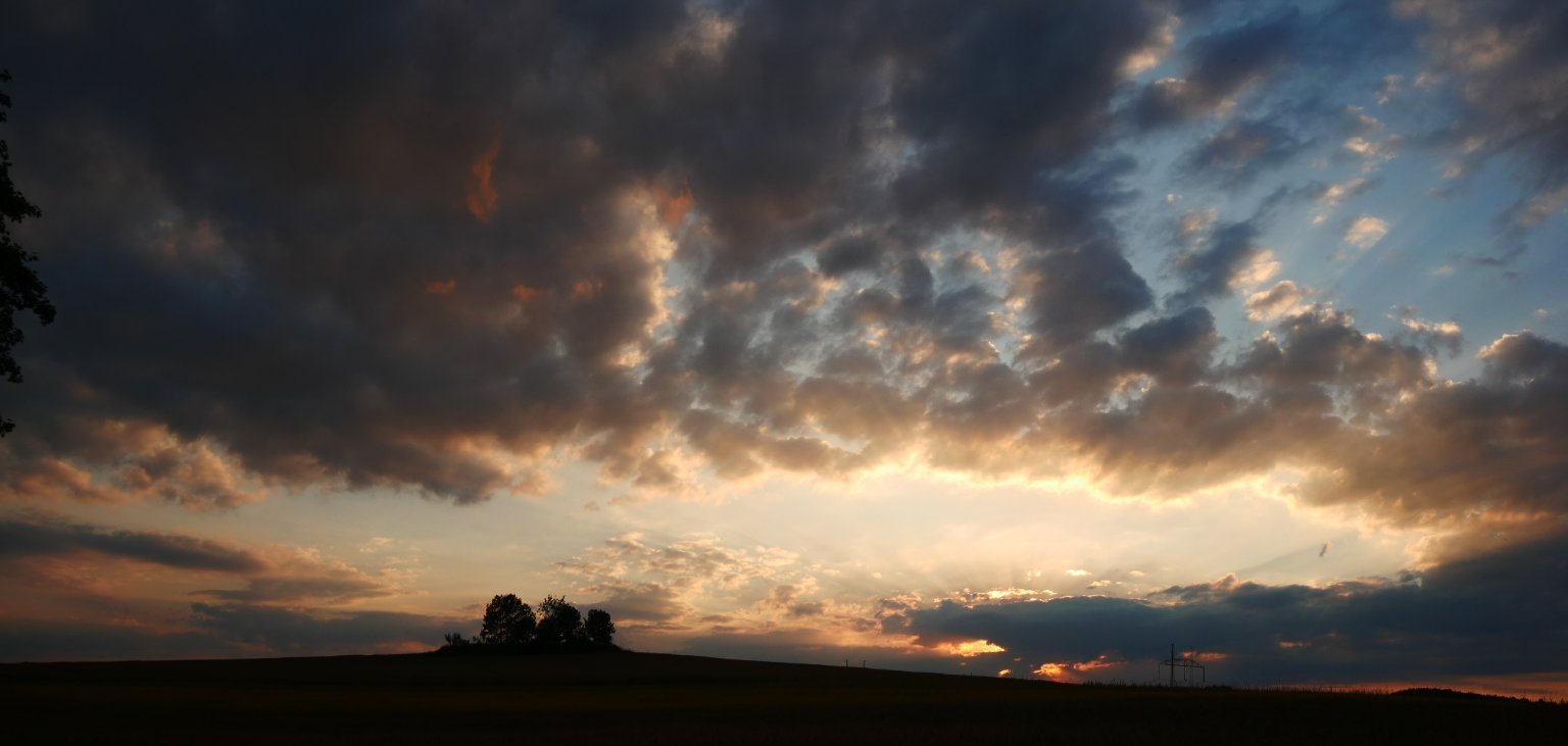 Večerní slunce krásně osvětluje odcházející oblačnost. Vane slabý západní vítr, tlak: 1016hPa. I když pršelo téměř celý den, tak napršely pouze 3mm.