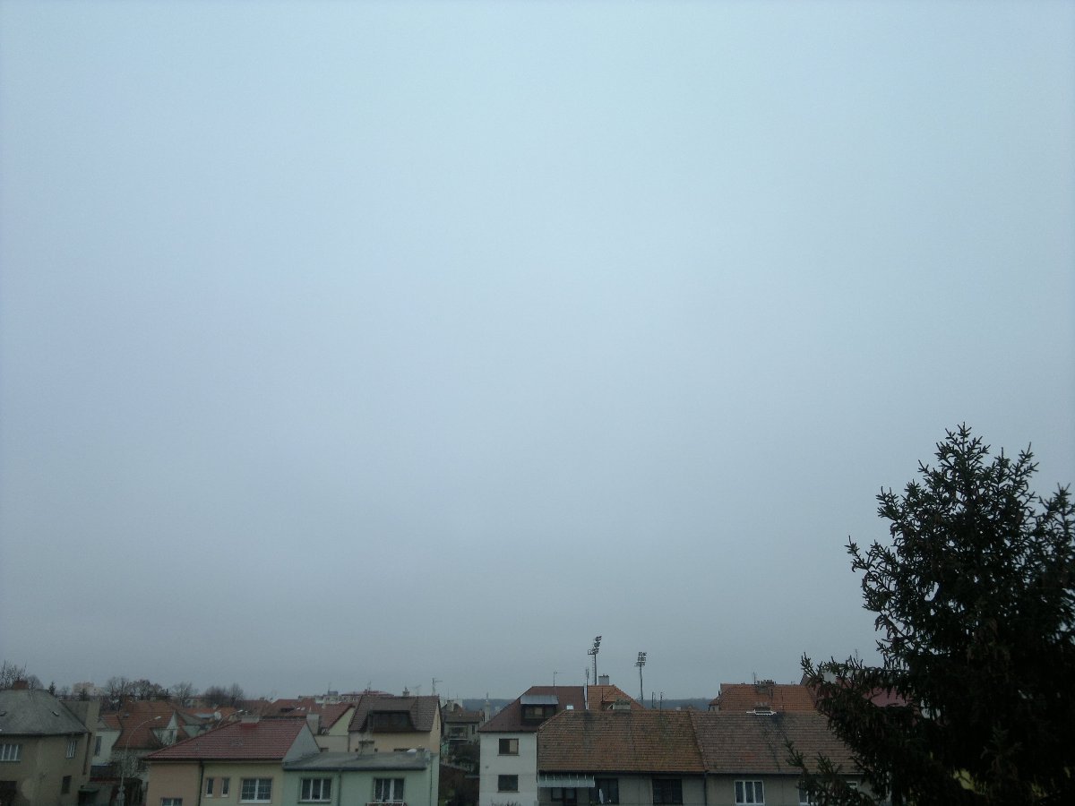Oblačnost 100%, zákl.mraků 598m, tlak 1025,2hPa, dohlednost 1,5km, vlhkost 96,9%, ZSZ větřík 282° 1,9m/s(2 Bft).